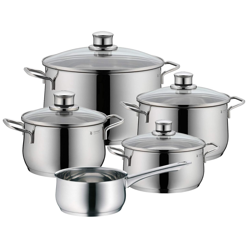 Jogo de Panelas com Tampas de Vidro Cromada em Aço Inoxidável WMF Diadem Plus Prata