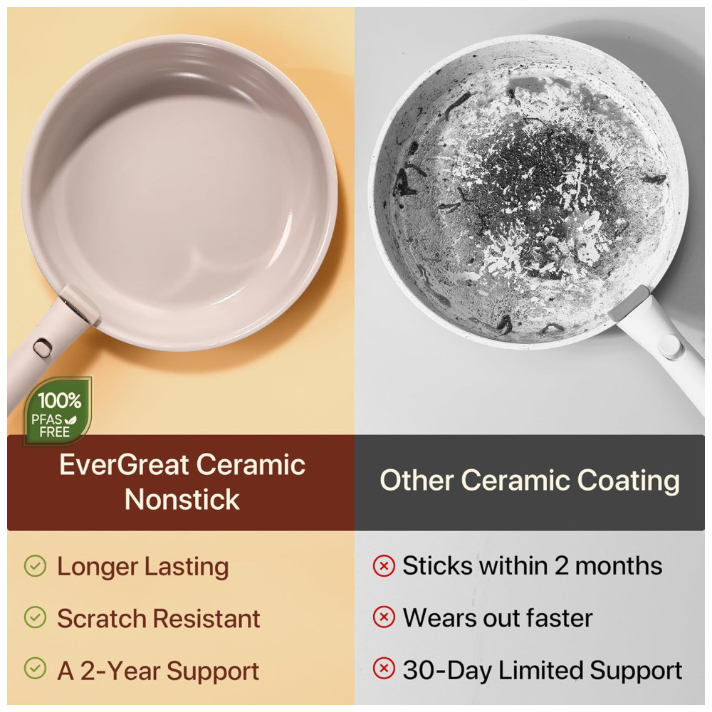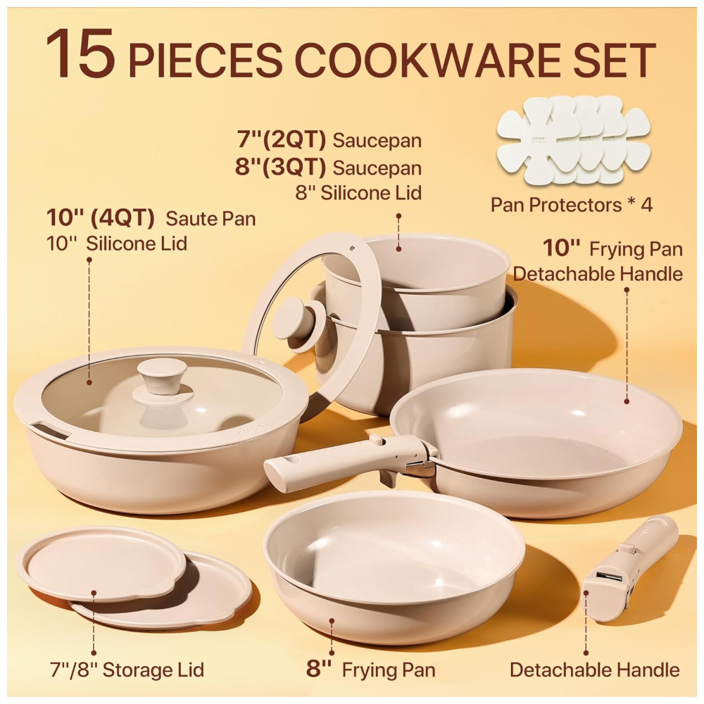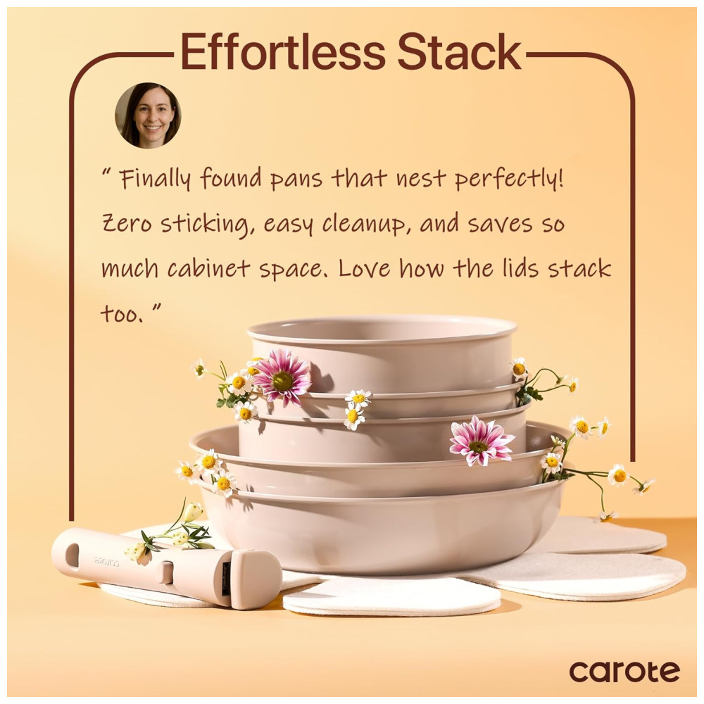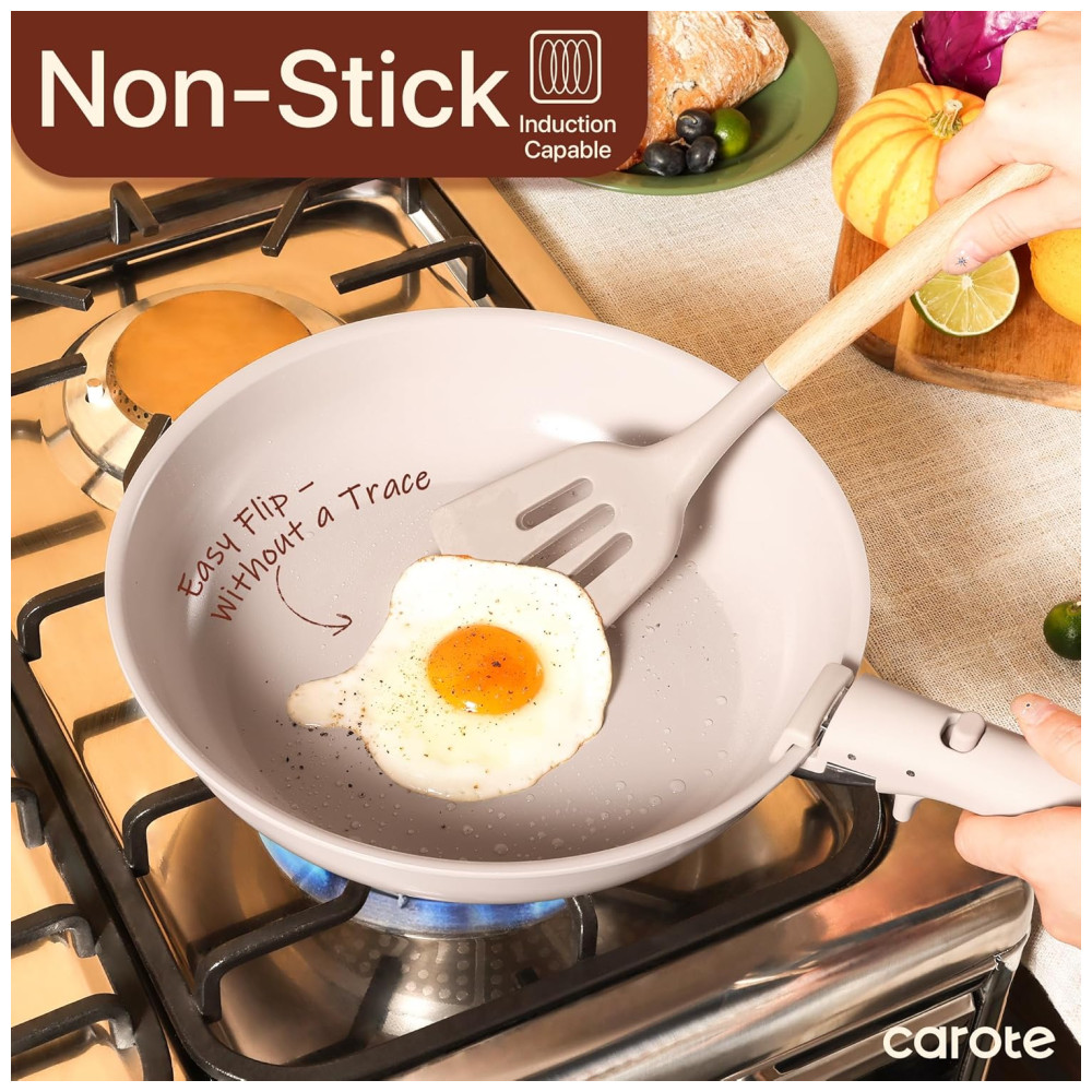 Este conjunto de panelas é fabricado com cerâmica natural de alta qualidade, garantindo excelente desempenho antiaderente, liberando os alimentos facilmente e proporcionando uma culinária mais saudável. O revestimento cerâmico avançado foi projetado para uma durabilidade superior, com resistência a riscos e manchas, mantendo suas panelas em ótimo estado ao longo do tempo. Livre de PFOA, PTFE, PFAS, chumbo e cádmio, este conjunto é 100% atóxico para garantir segurança durante o cozimento. Compatível com fogão a gás, elétrico, indução e forno, as panelas CAROTE são versáteis e práticas. O jogo inclui frigideiras, panelas, frigideira, tampas de silicone e de armazenamento, alças removíveis e protetores de panela.