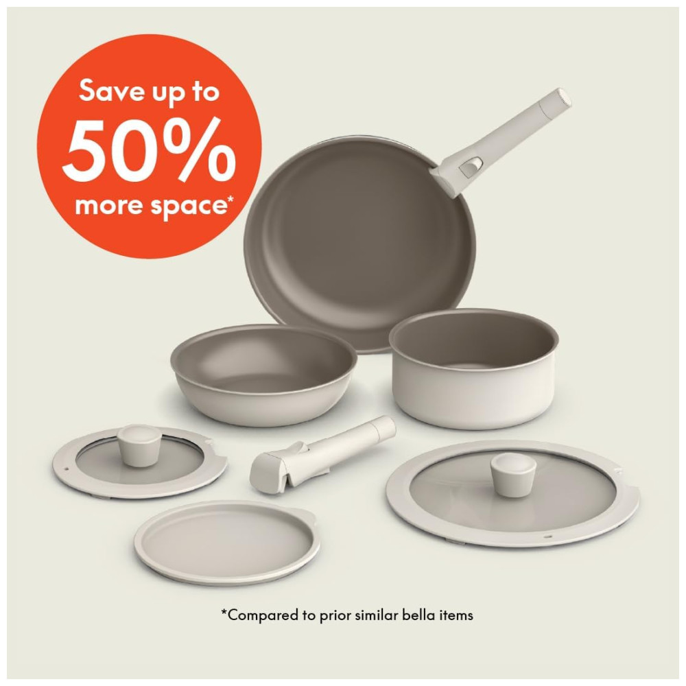 Jogo de Panelas e Frigideiras 8 Peças com Cabo Removível e Revestimento Antiaderente Cerâmico EverGood™ BELLA Branco
