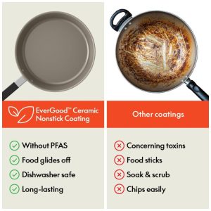 Eleve Sua Experiência Culinária: Com este versátil conjunto de utensílios de cozinha antiaderentes, projetado para trazer estilo e eficiência a qualquer cozinha. Com aquecimento rápido e uniforme, você estará preparando pratos como shakshuka vibrante, curries tailandeses picantes ou risotos ricos e cremosos em nenhum momento.