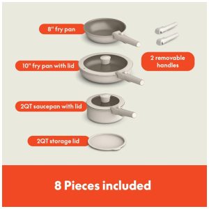 Jogo de Panelas e Frigideiras 8 Peças com Cabo Removível e Revestimento Antiaderente Cerâmico EverGood™ BELLA Branco
