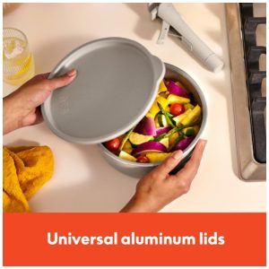 Design Funcional: As tampas planas de vidro, com bordas de silicone, permitem que você monitore seus pratos sem perder calor. As alças de toque frio garantem um manuseio seguro e fácil. Quando for hora de terminar um prato no forno, este conjunto de utensílios de cozinha é seguro para temperaturas de até 160 °C (325 °F), permitindo que você prepare pratos como macarrão assado ou uma frittata com facilidade.