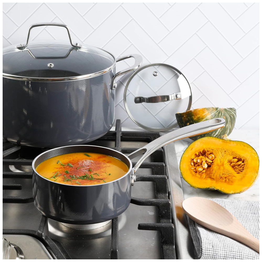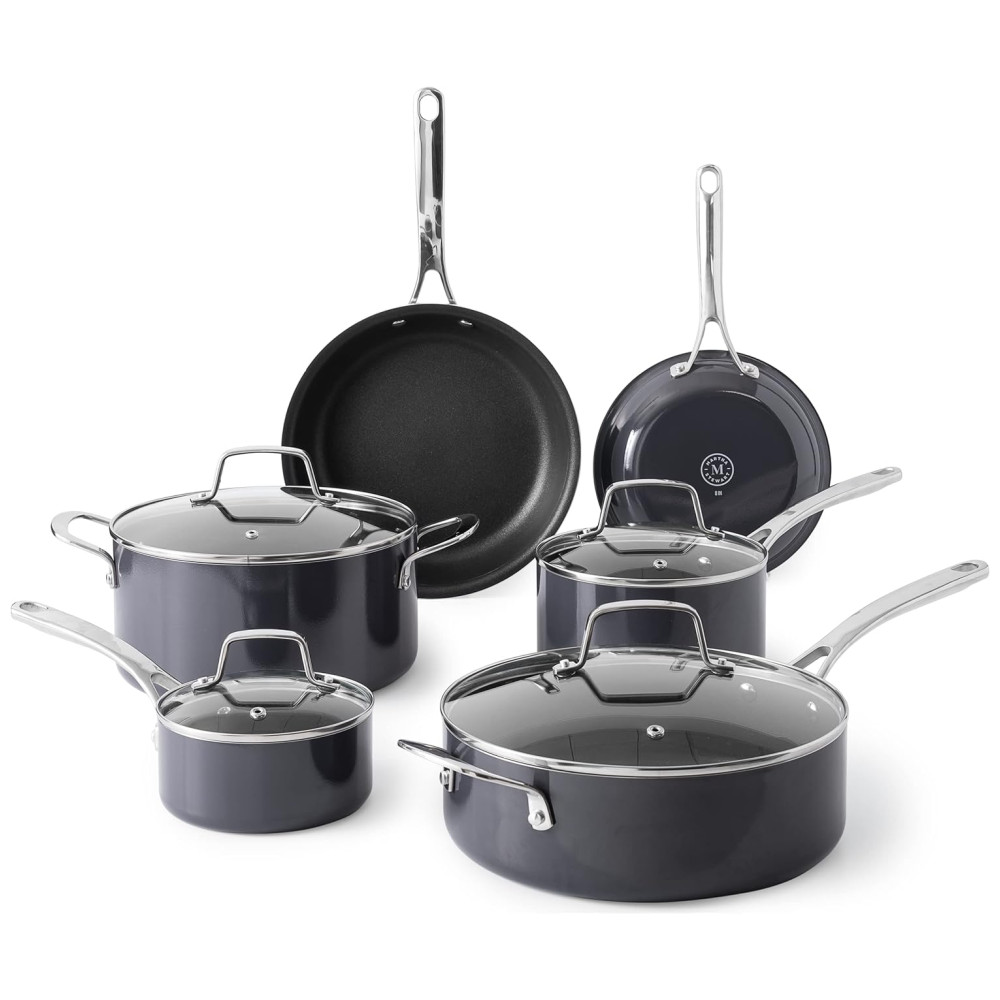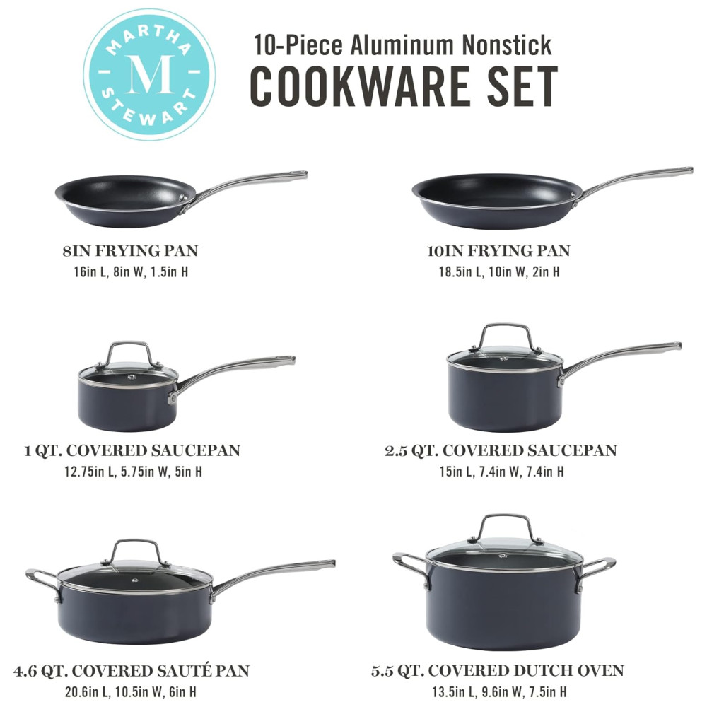 Jogo de Panelas e Frigideiras Antiaderentes em Alumínio 10 Peças Martha Stewart Cinza