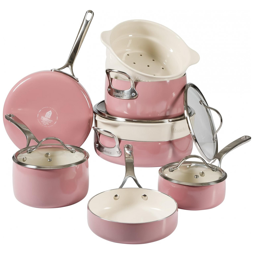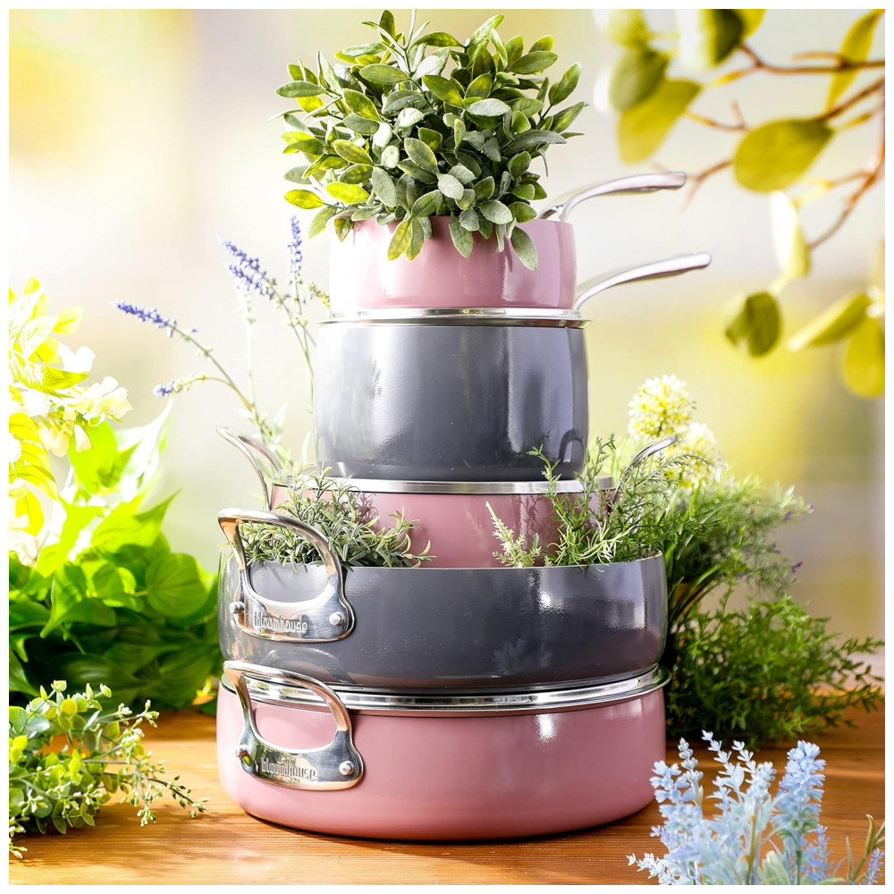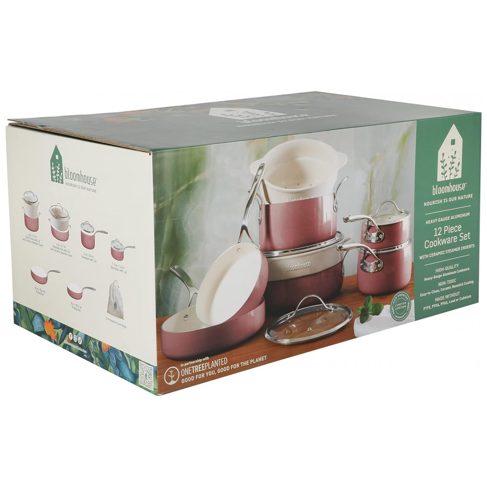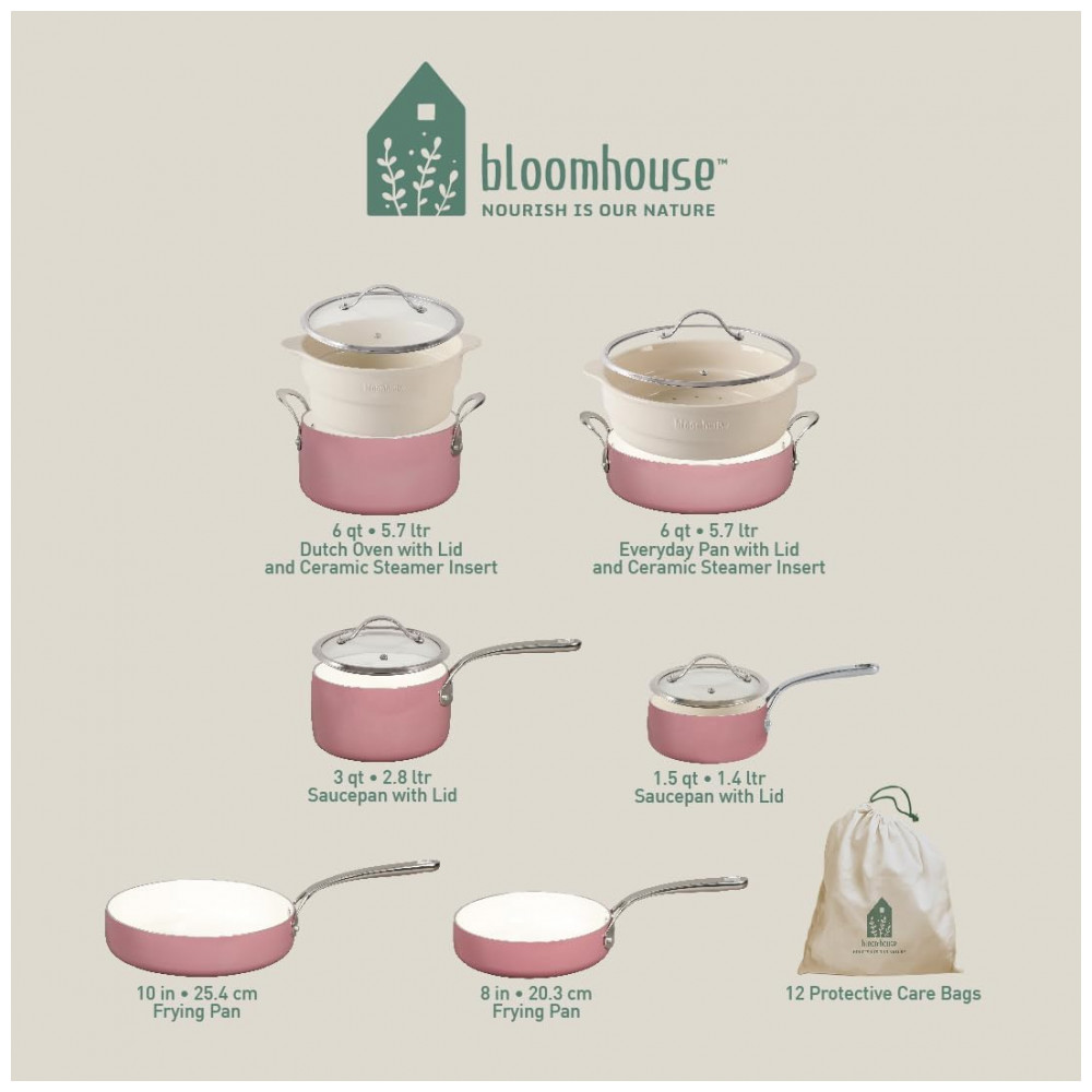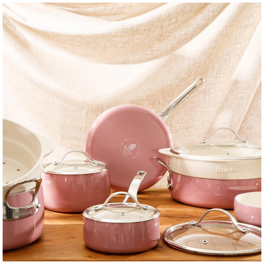 Jogo de Panelas e Frigideiras Antiaderentes em Alumínio com Revestimento Cerâmico 12 Peças Bloomhouse Rosa