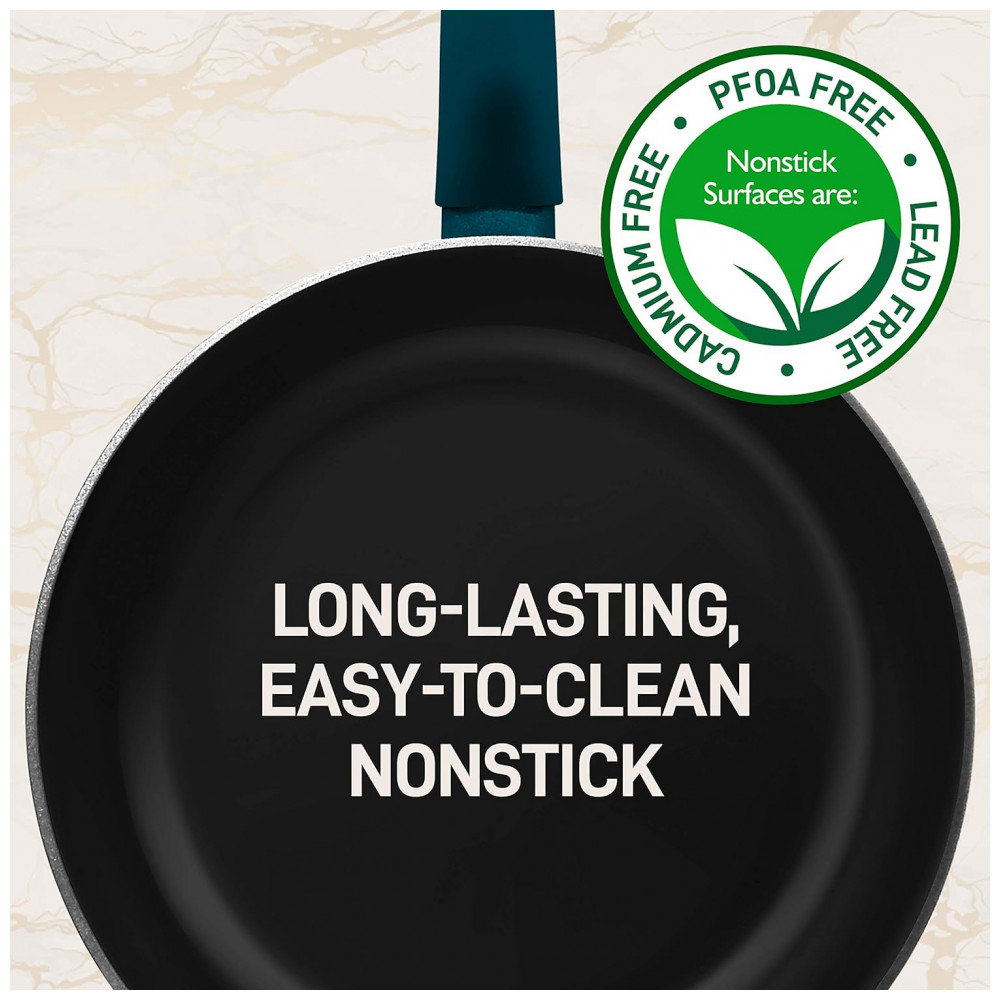 REVESTIMENTO ANTI ADERENTE O conjunto de utensílios de cozinha antiaderente apresenta um revestimento antiaderente durável e duradouro para facilitar a liberação ou lançamento de alimentos, limpeza e cozimento saudável. Tem um exterior anodizado rígido que torna os utensílios de cozinha resistentes ao calor elevado.