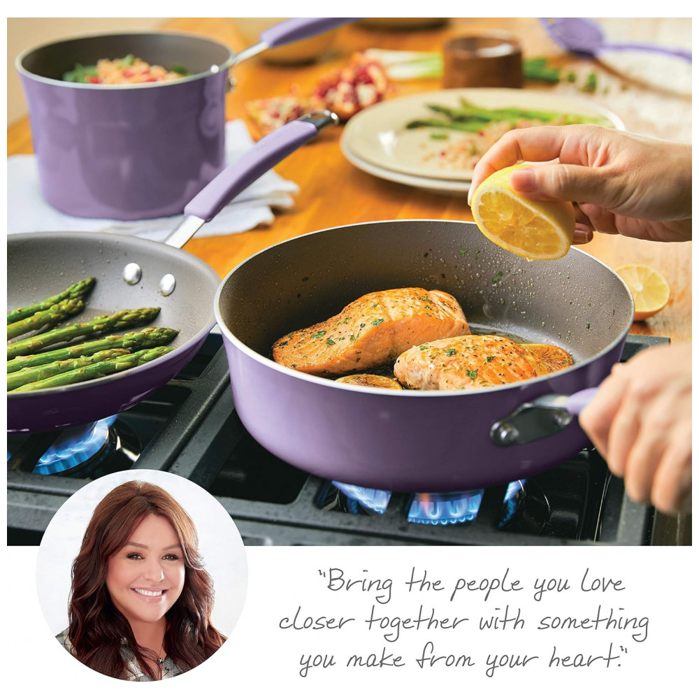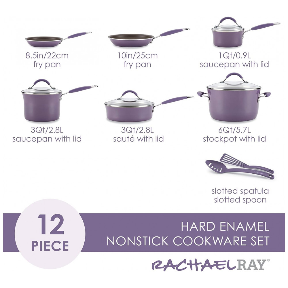 Jogo de Panelas e Frigideiras Antiaderentes em Alumínio com Utensílios 12 Peças Rachael Ray Roxo