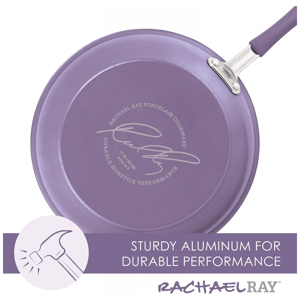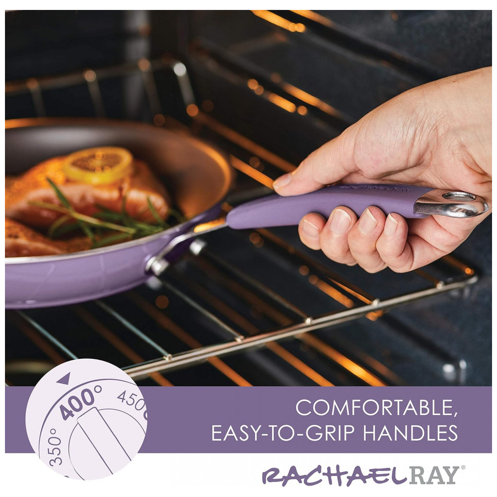 DESIGN DURÁVEL As panelas e frigideiras antiaderentes de Rachael Ray são feitas com alumínio durável e exteriores de porcelana de esmalte duro resistente para resistir a cozinhas ocupadas.