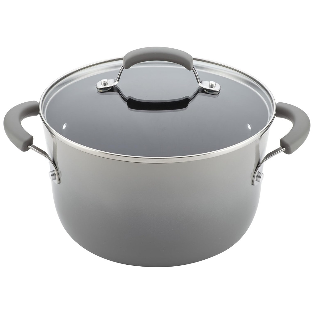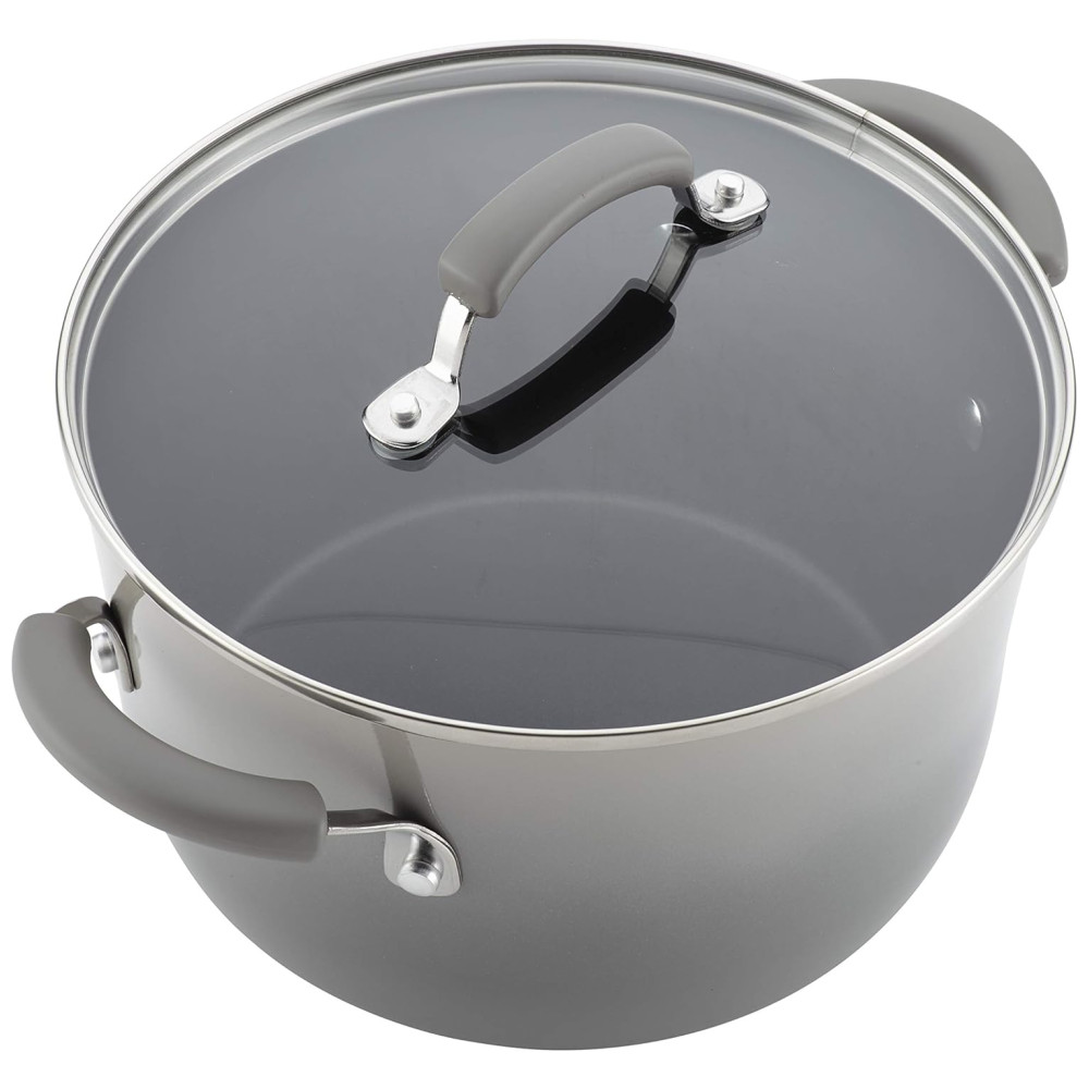CONJUNTO DE COZINHAS ESTILOSOS DE RACHAEL RAY O conjunto de panelas e frigideiras apresenta construção durável e acabamentos de esmalte duro para excelente durabilidade e distribuição uniforme de calor.