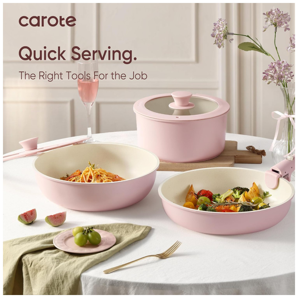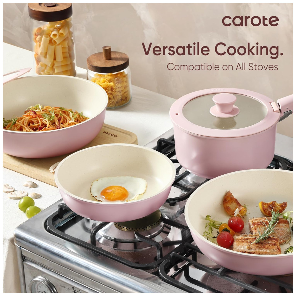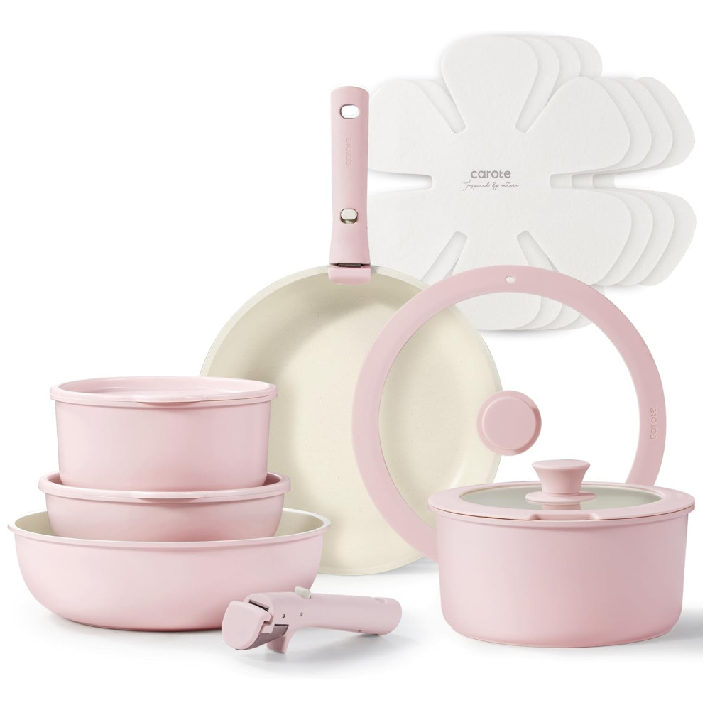 Jogo de Panelas e Frigideiras Antiaderentes em Granito com 11 Peças e Cabo Removível CAROTE Rosa