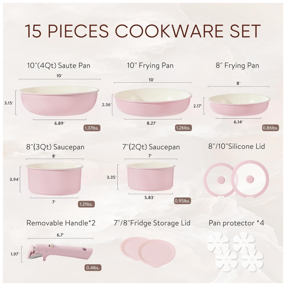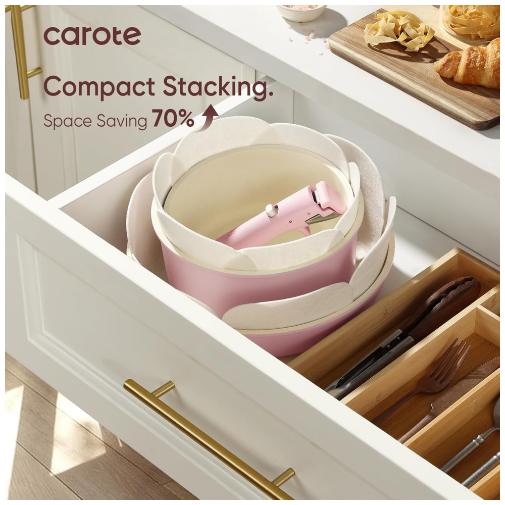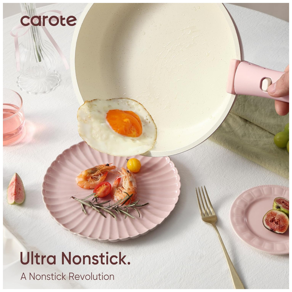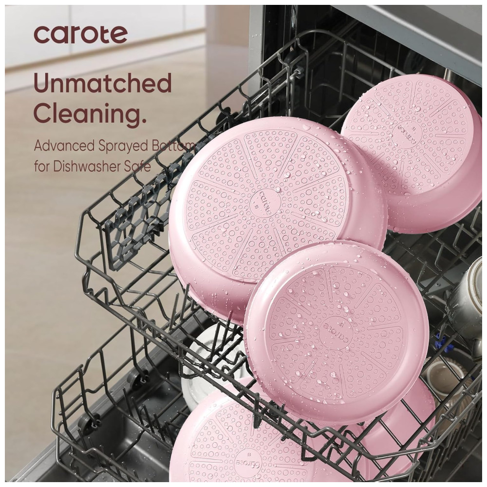 Jogo de Panelas e Frigideiras Antiaderentes em Granito com 11 Peças e Cabo Removível CAROTE Rosa