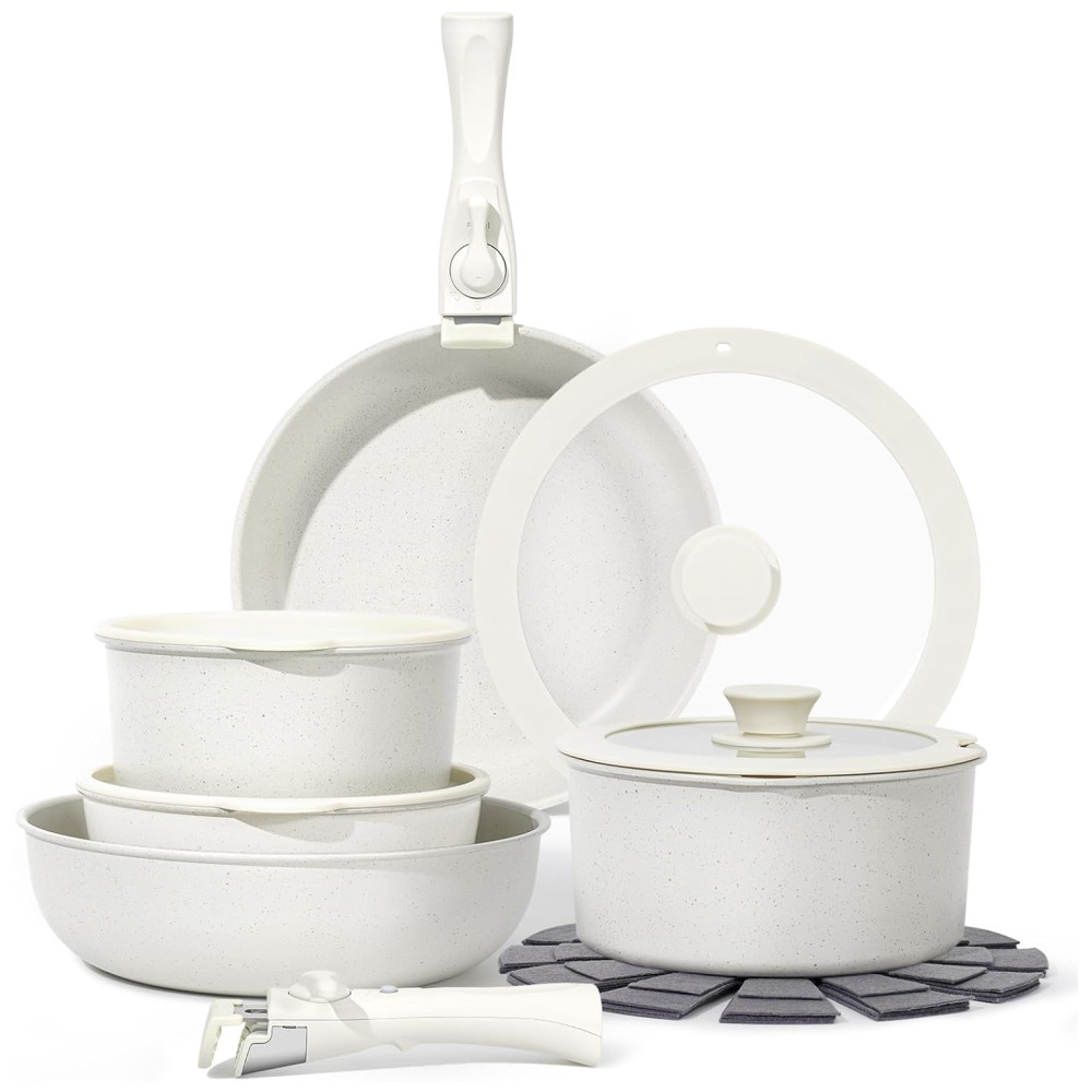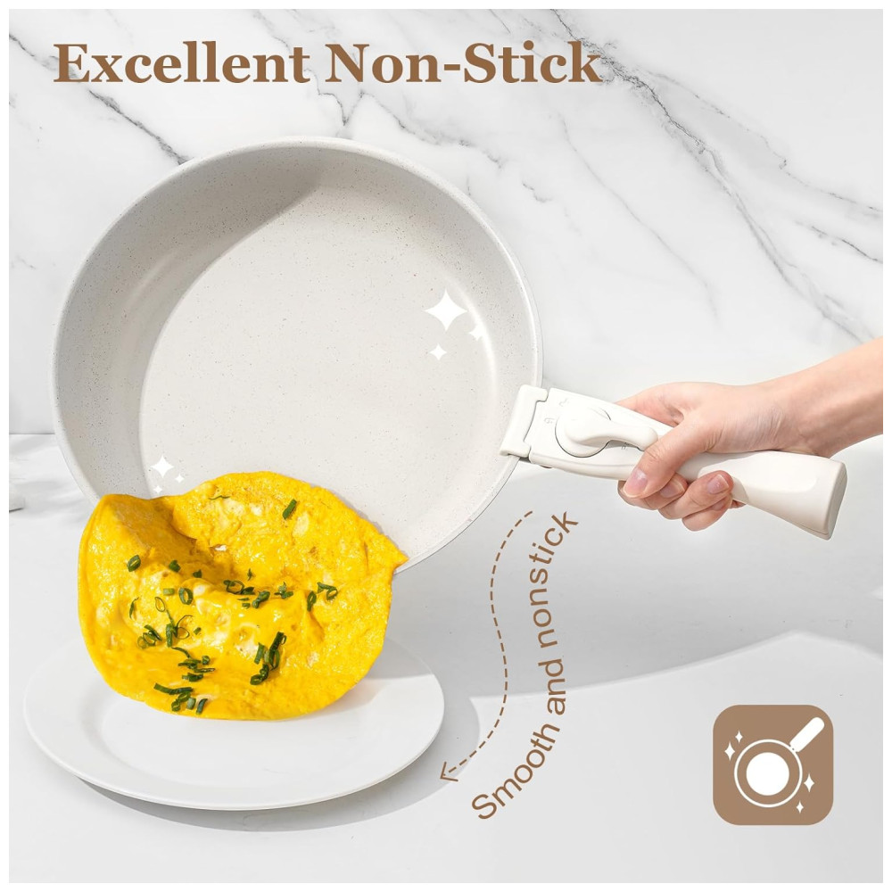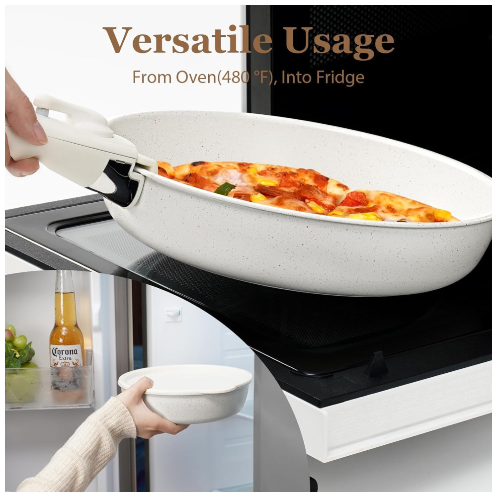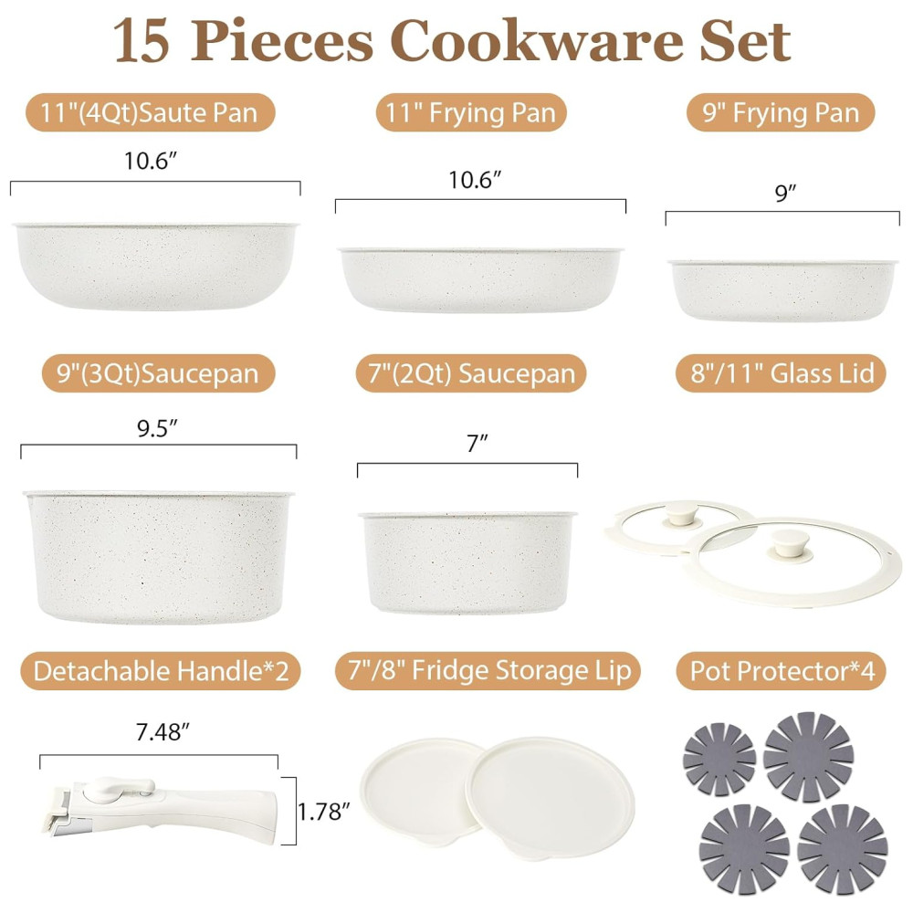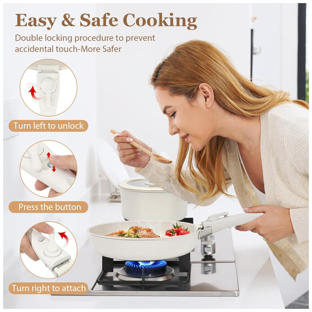 Jogo de Panelas e Frigideiras Antiaderentes em Granito com 15 Peças e Cabo Removível SODAY Branco