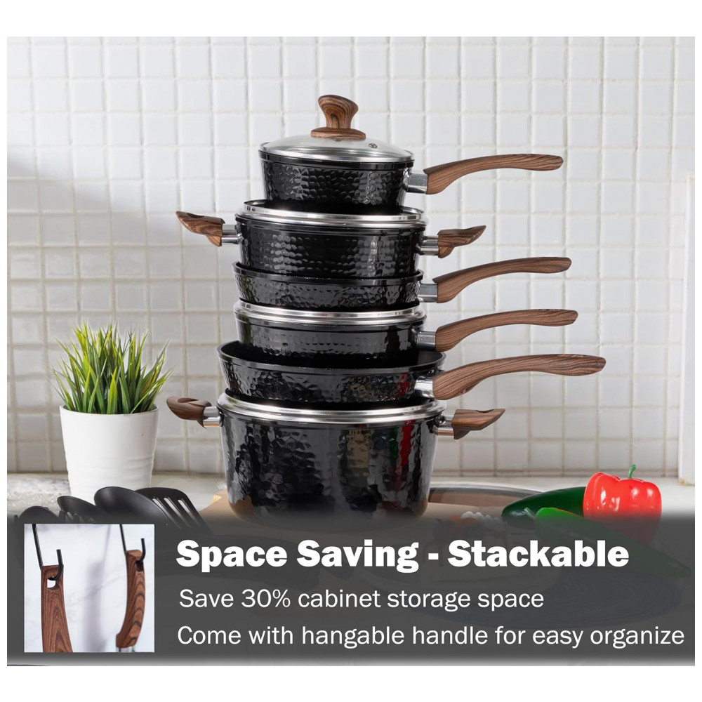 Jogo de Panelas e Frigideiras Antiaderentes em Granito com Utensílios KITCHEN ACADEMY BETTER Preto