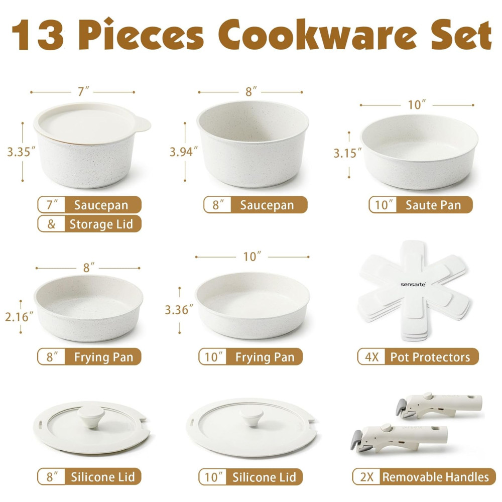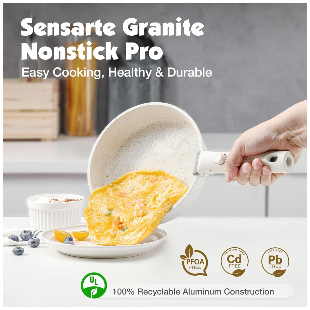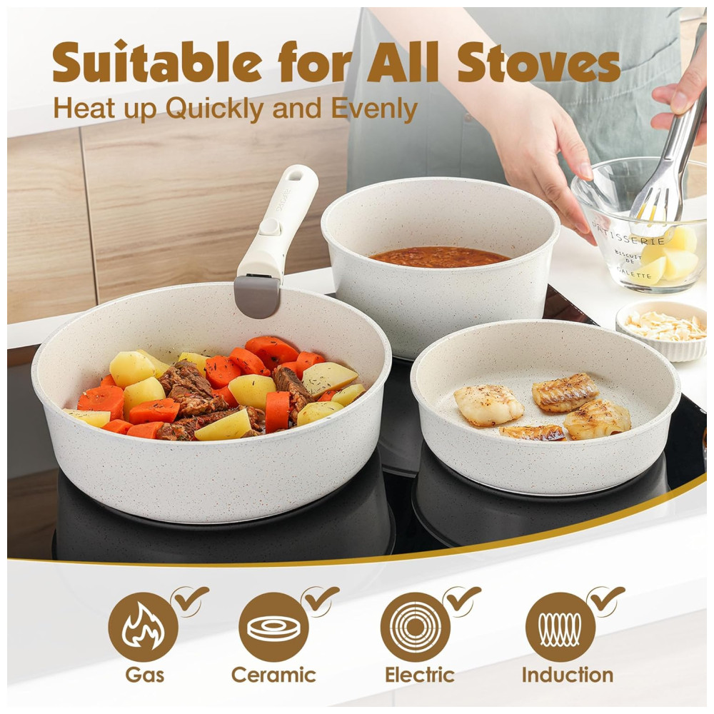 Jogo de Panelas e Frigideiras Antiaderentes Material em Alumínio com 10 Peças e Cabo Removível SENSARTE Branco