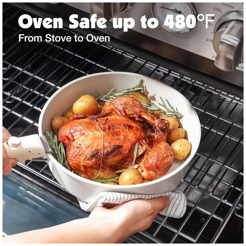 Revestimento Antiaderente de Granito: Revestimento livre de chumbo, cádmio e PFOA, sem emissão de fumaça, proporcionando uma opção segura e saudável. Cozinhe com pouco óleo para uma dieta mais saudável.