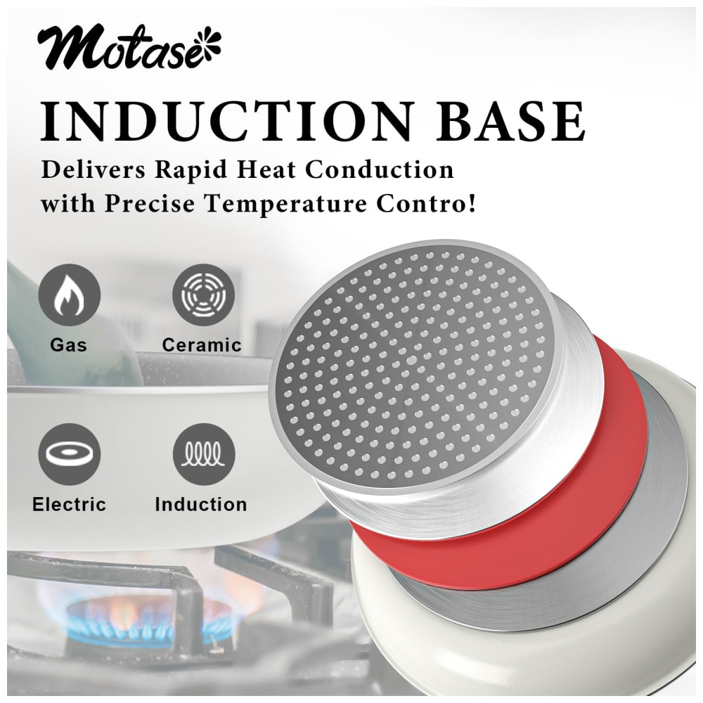 Granito Antiaderente de Longa Duração: Aprovado pela SGS, com 0% de PFOS e PFOA, o revestimento antiaderente exclusivo é o mais durável entre os itens da linha Motase, garantindo uma experiência de uso prolongada e sem sujeira.
