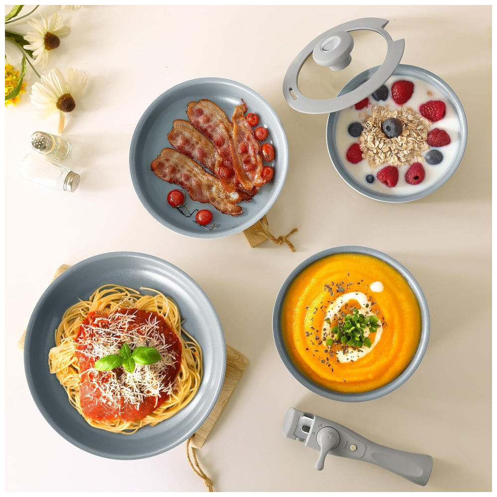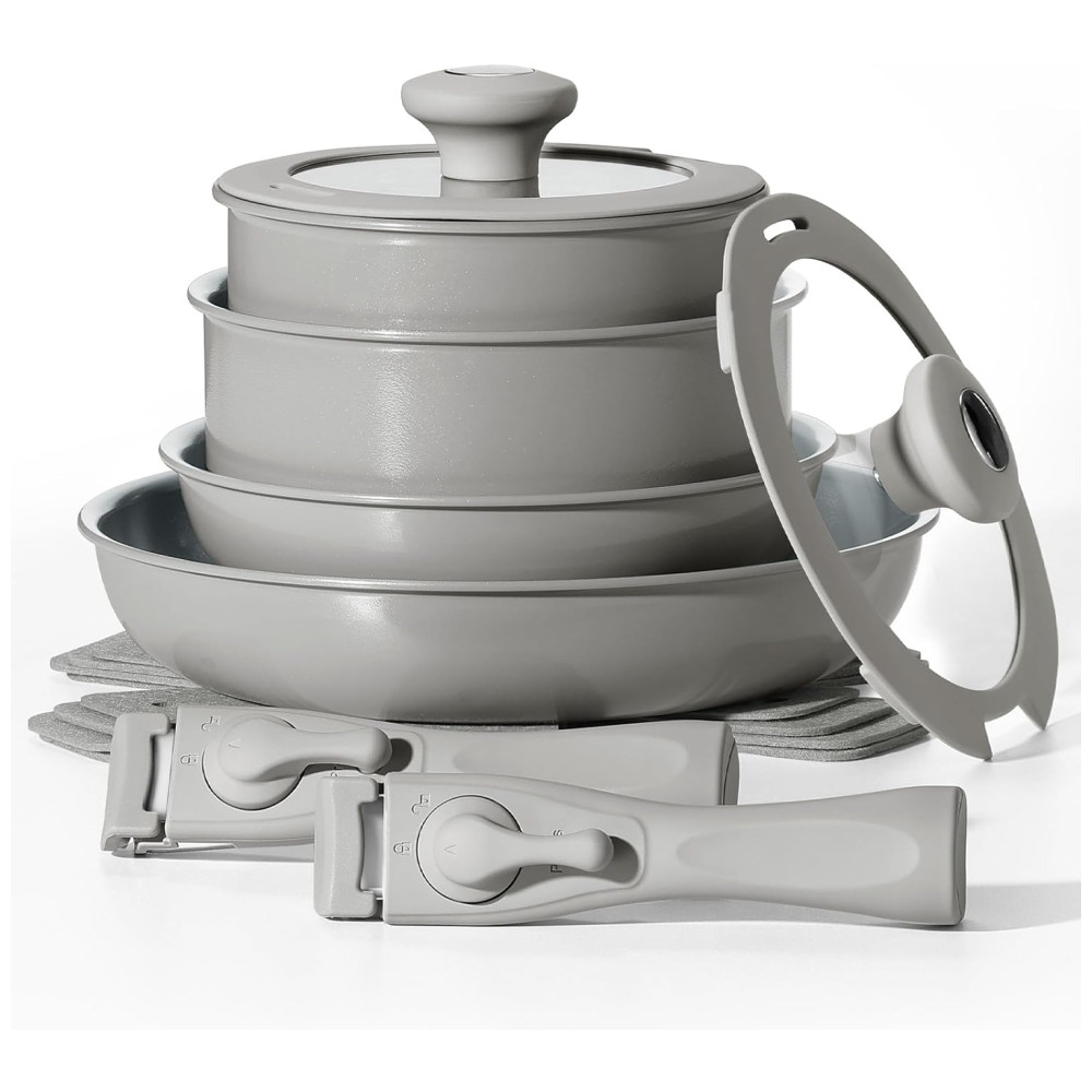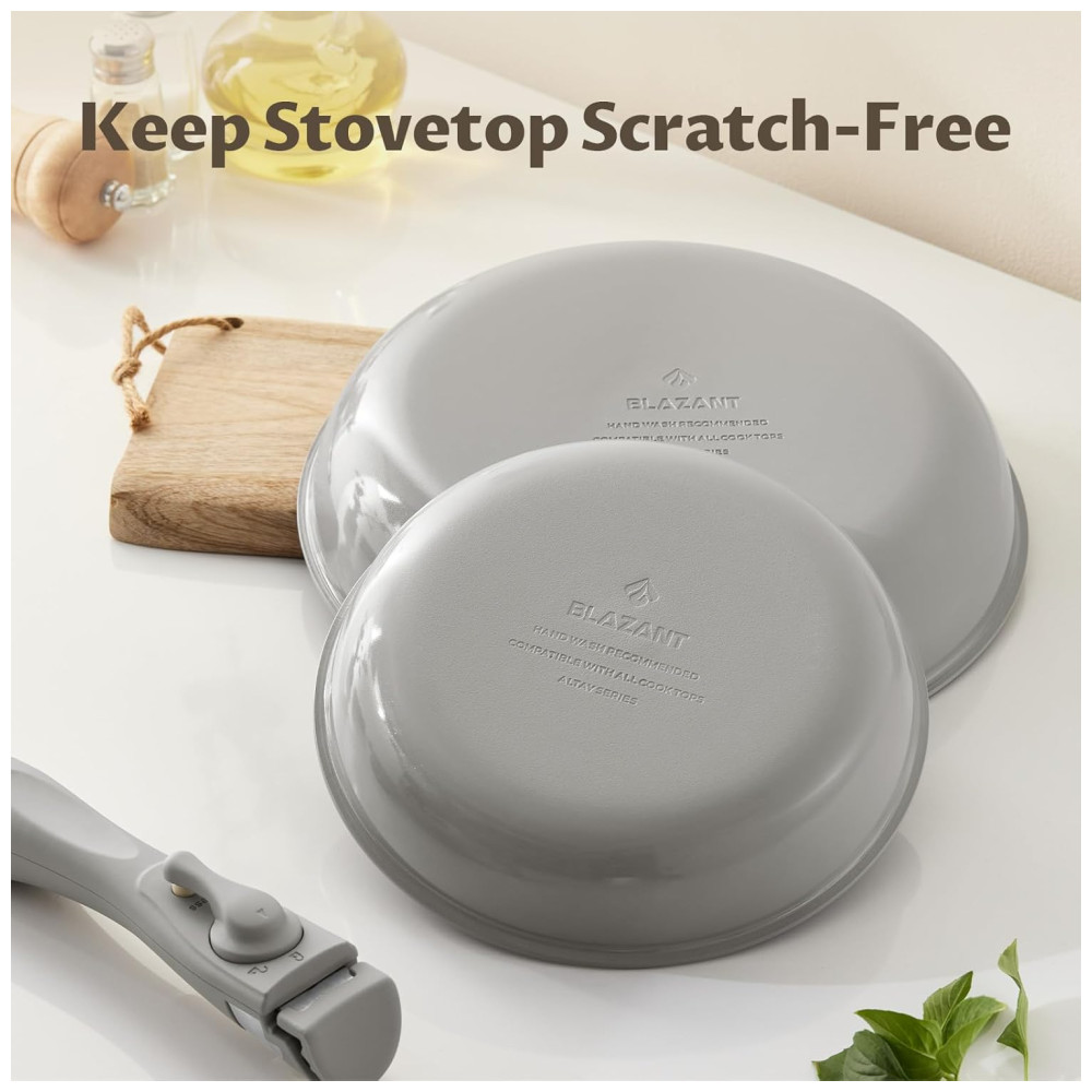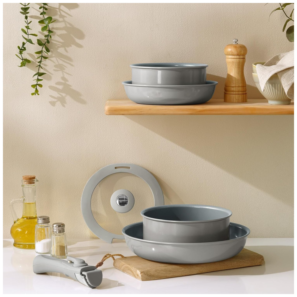 Jogo de Panelas e Frigideiras Antiaderentes Material em Alumínio e Cerâmica com 14 Peças e Cabo Removível BLAZANT Cinza