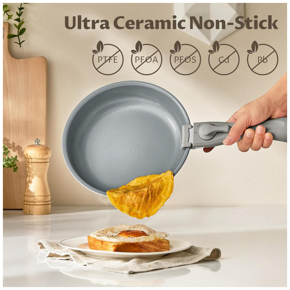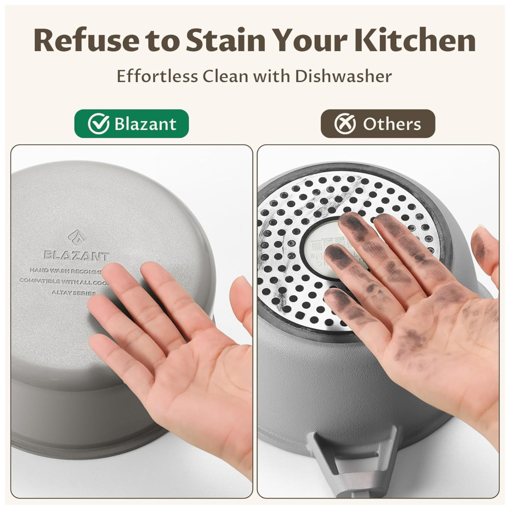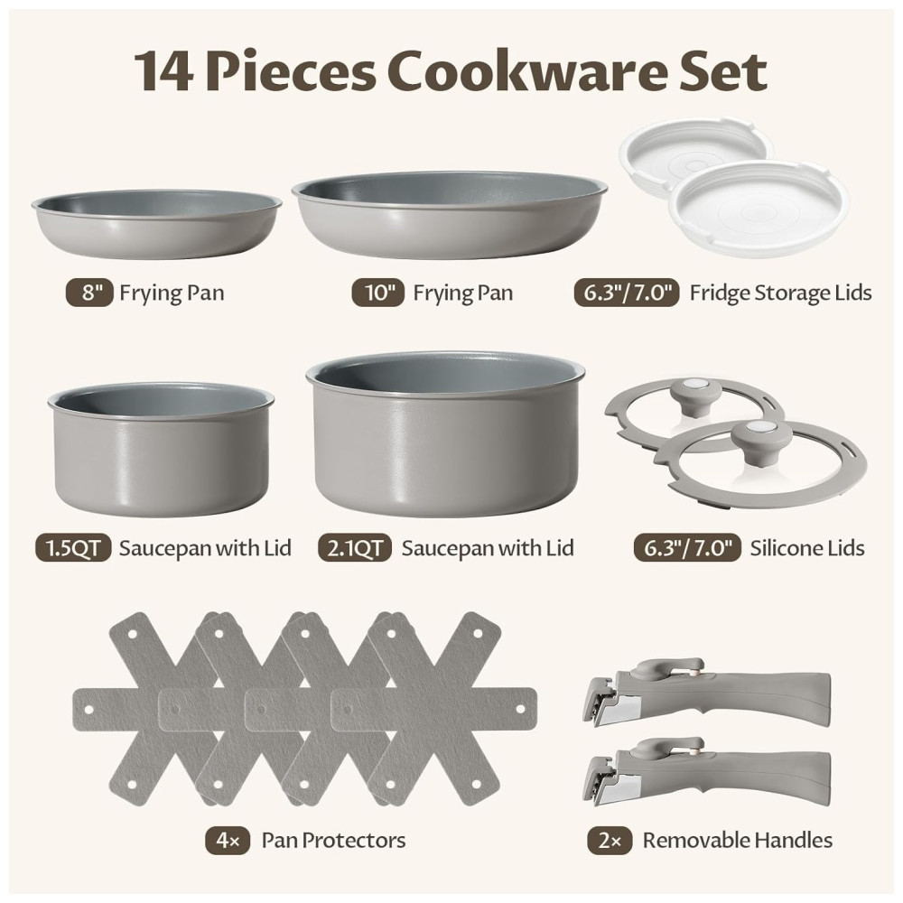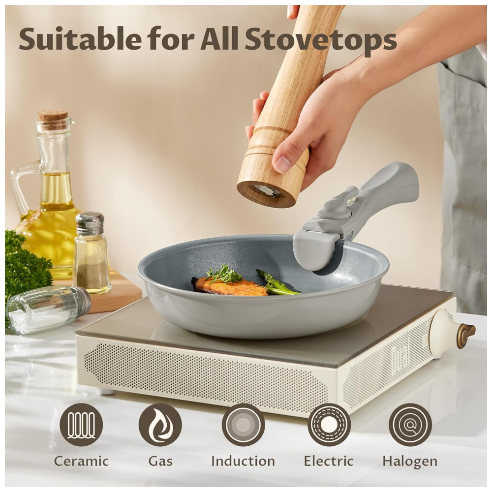 Jogo de Panelas e Frigideiras Antiaderentes Material em Alumínio e Cerâmica com 14 Peças e Cabo Removível BLAZANT Cinza