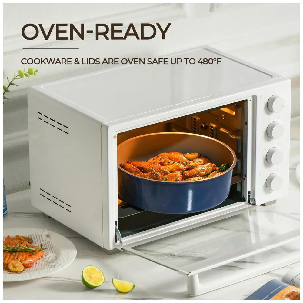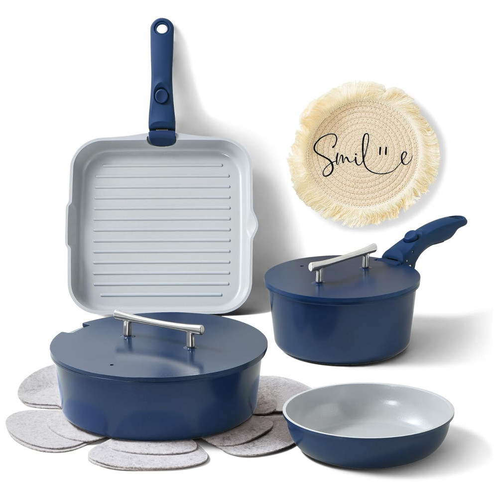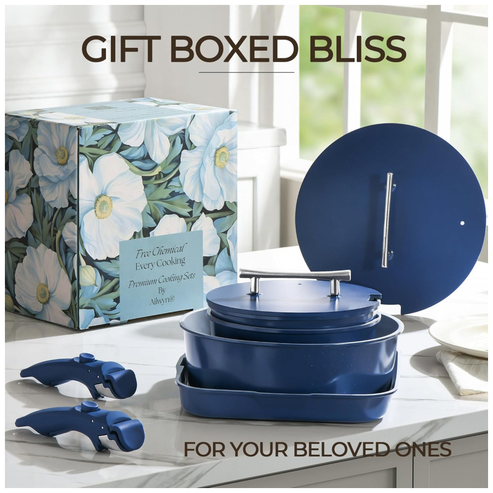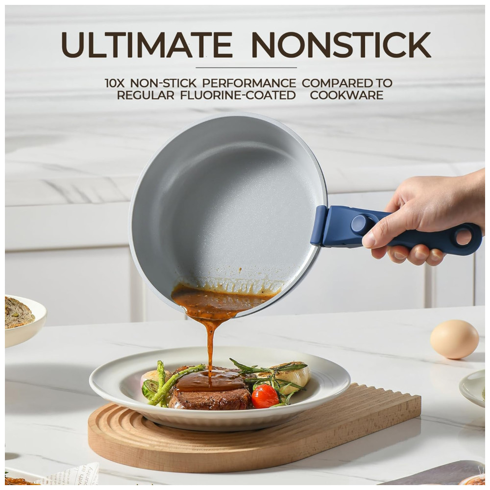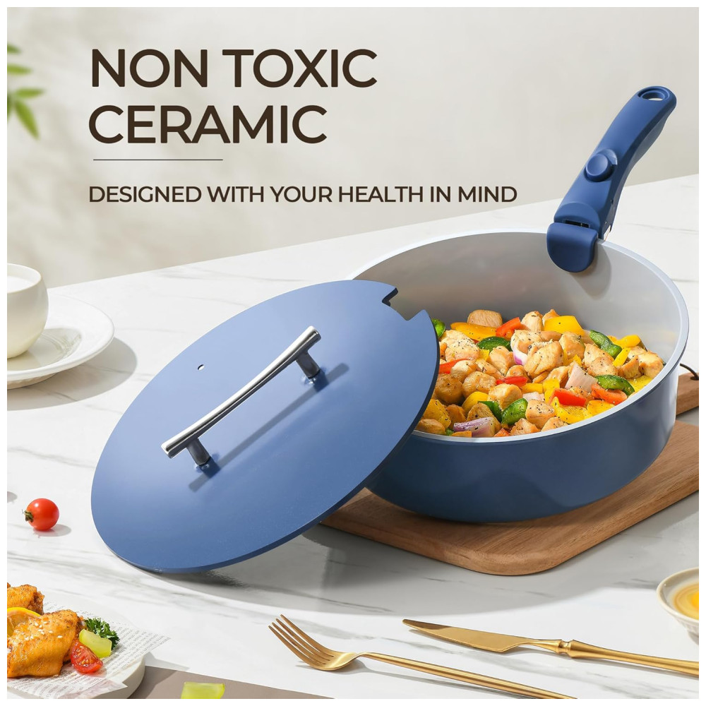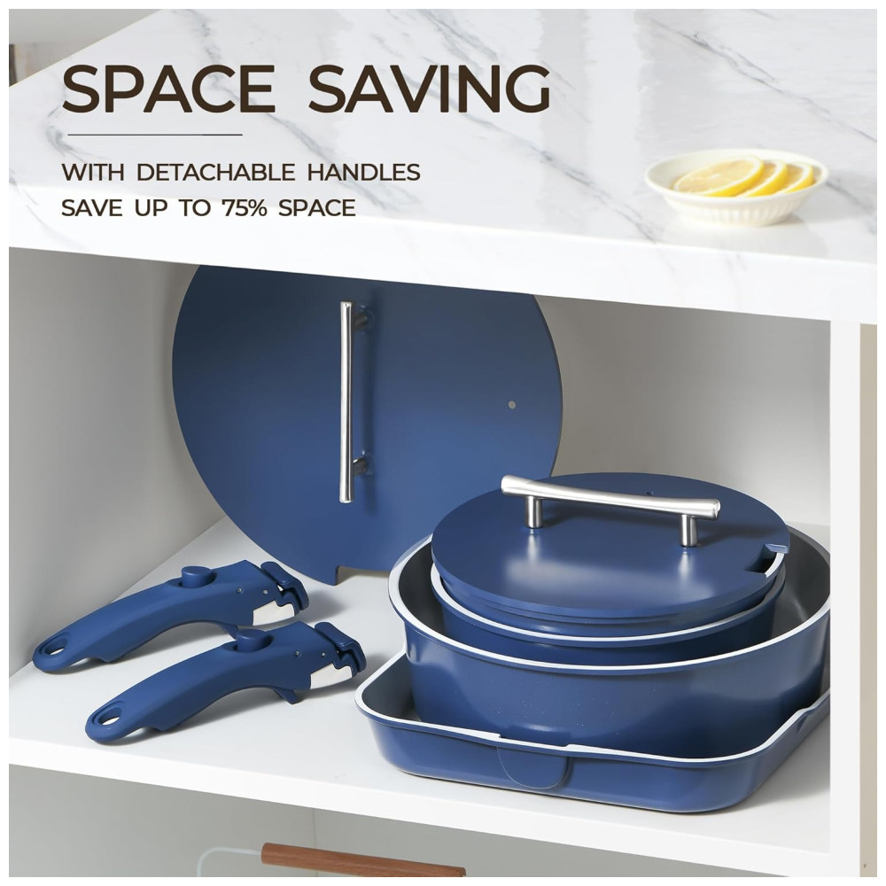 Jogo de Panelas e Frigideiras Antiaderentes Material em Cerâmica com 12 Peças Cabo Removível sem PTFE e PFOA Ailwyn Azul