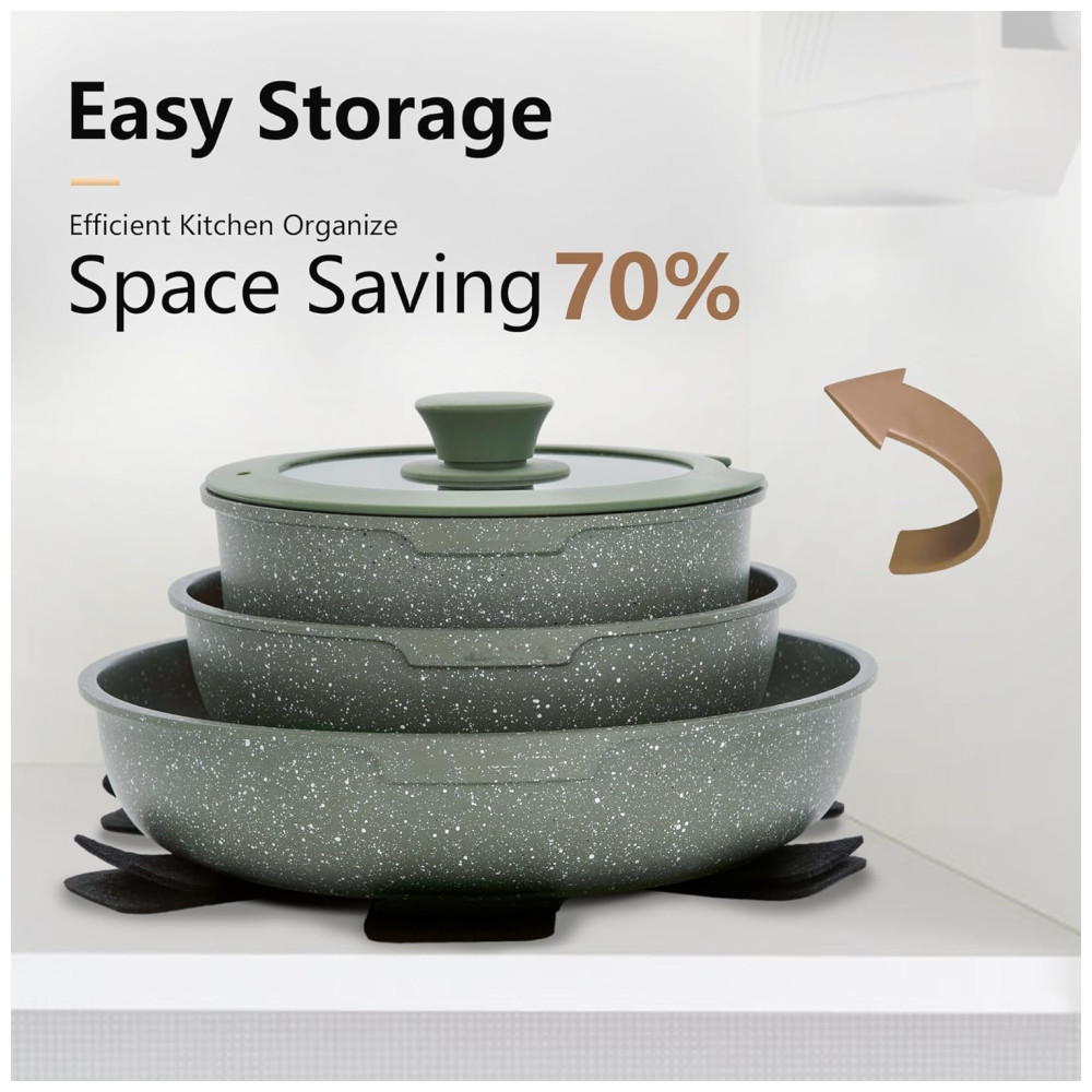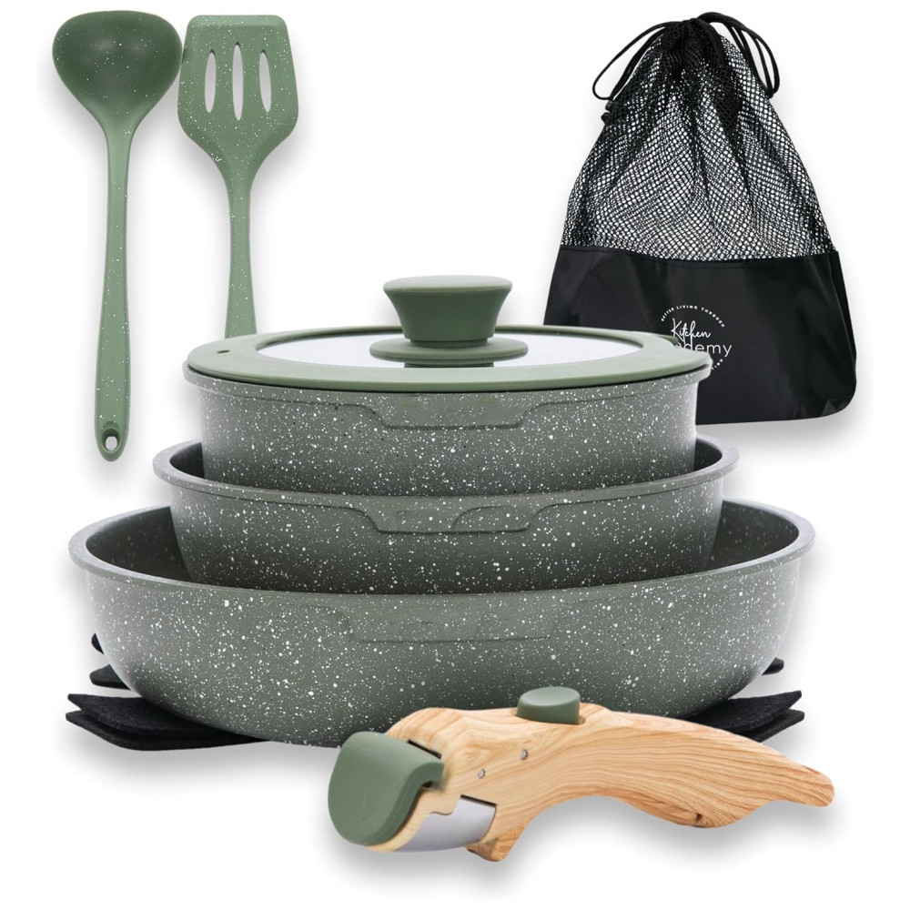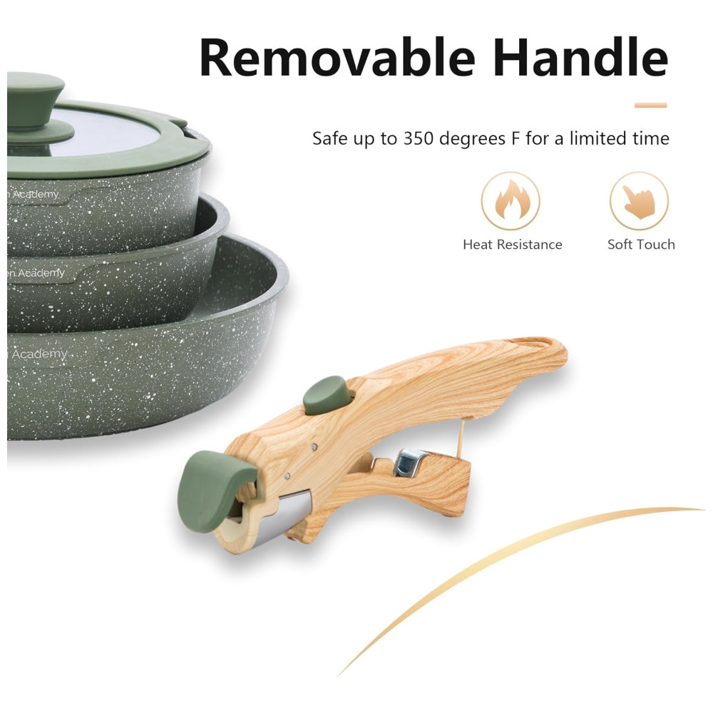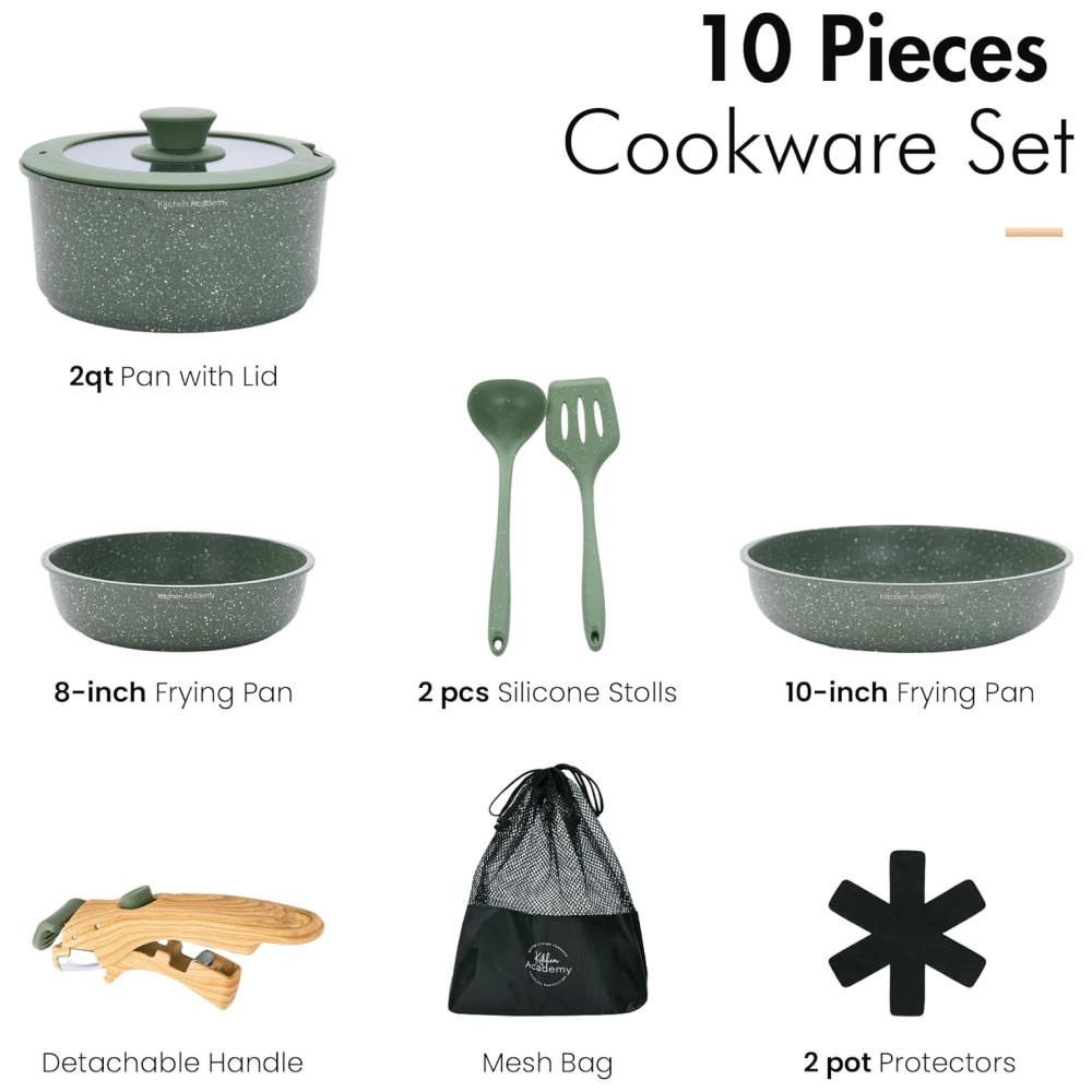 Jogo de Panelas e Frigideiras Antiaderentes Material em Granito com 10 Peças Cabo Removível e Utensílios de Cozinha DishDelight Verde