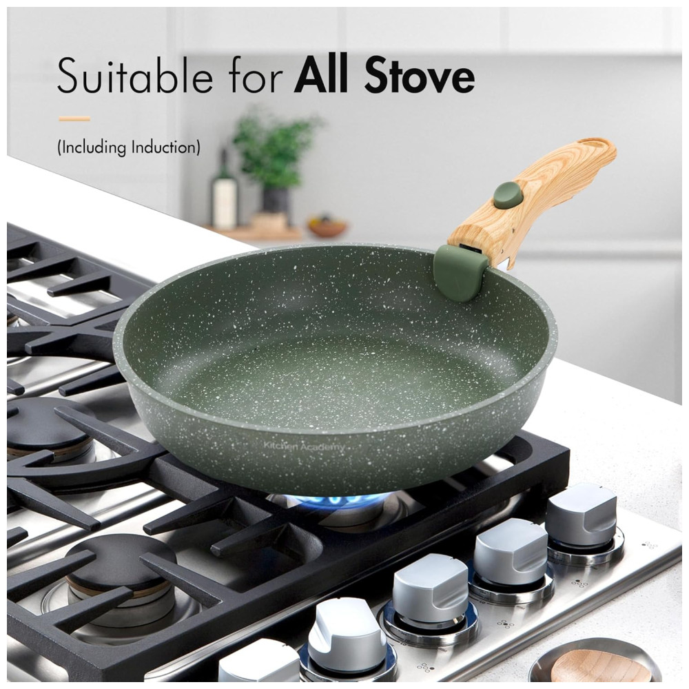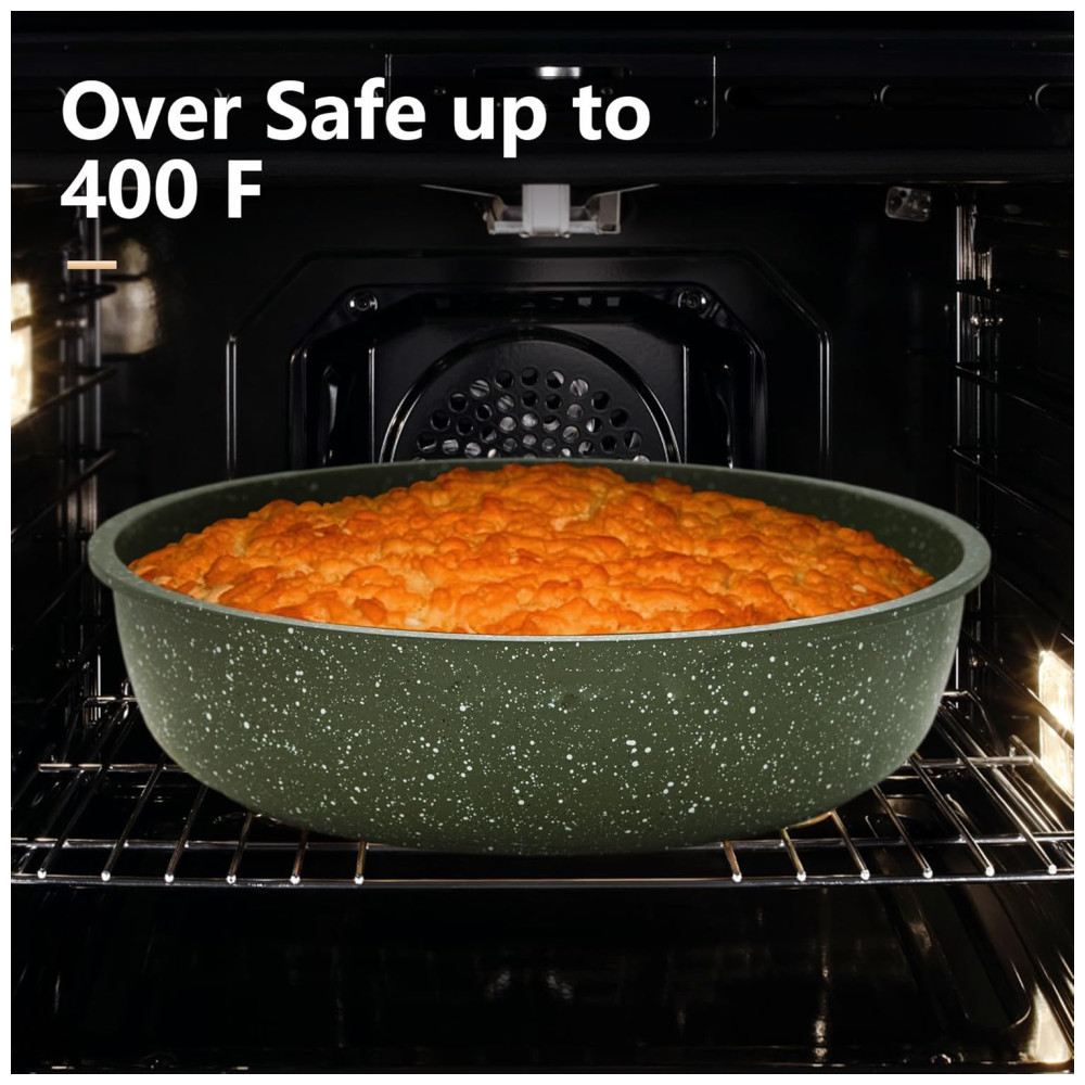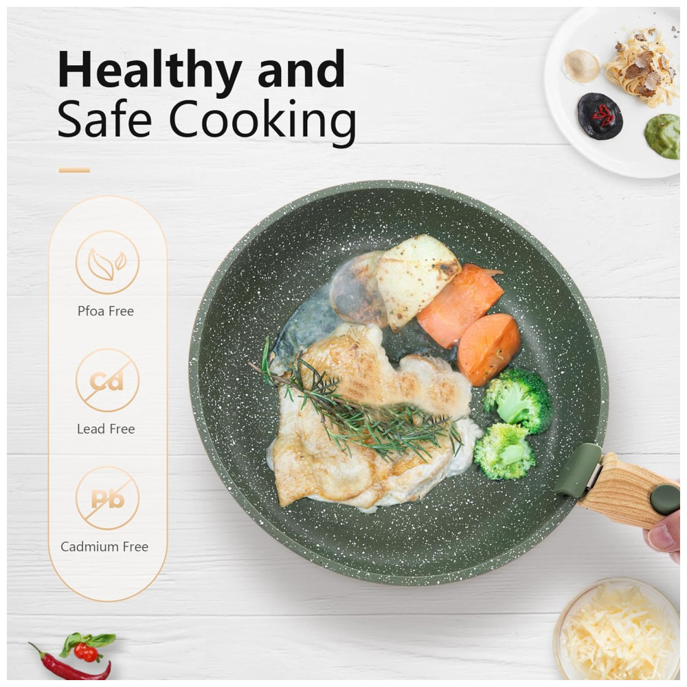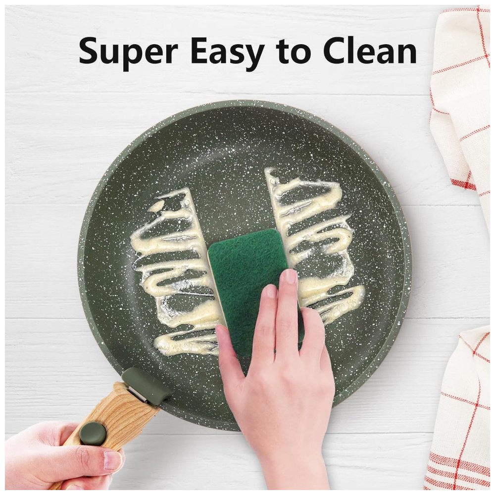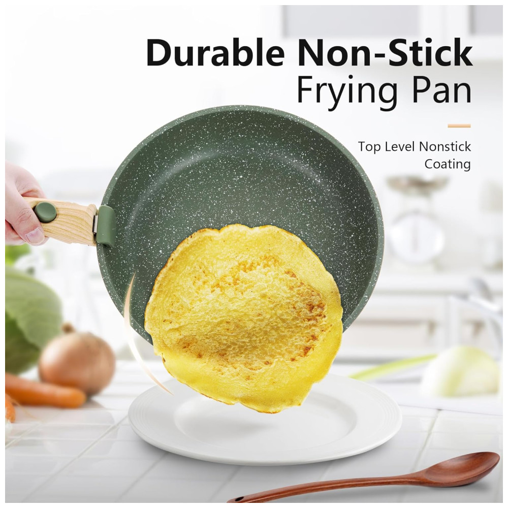 Jogo de Panelas e Frigideiras Antiaderentes Material em Granito com 10 Peças Cabo Removível e Utensílios de Cozinha DishDelight Verde