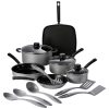 Componentes Inclusos: 1 frigideira , 1 frigideira , 1 panela , 1 frigideira , 1 caçarola, 1 caçarola, 1 concha para sopa, 1 espátula sólida, 1 espátula ranhurada, 4 protetores de panela,