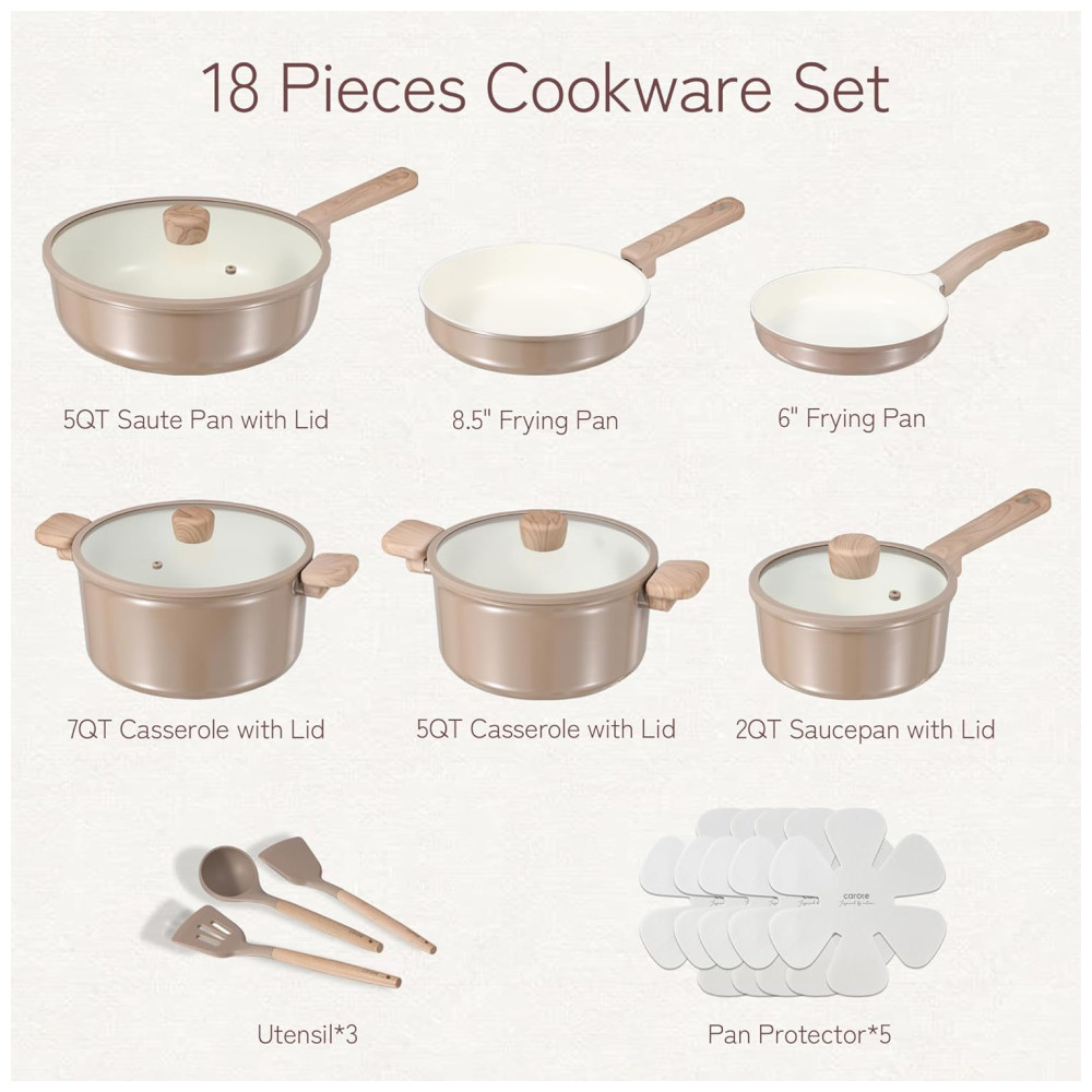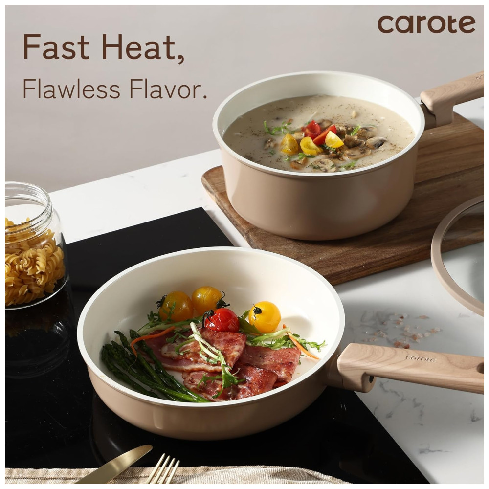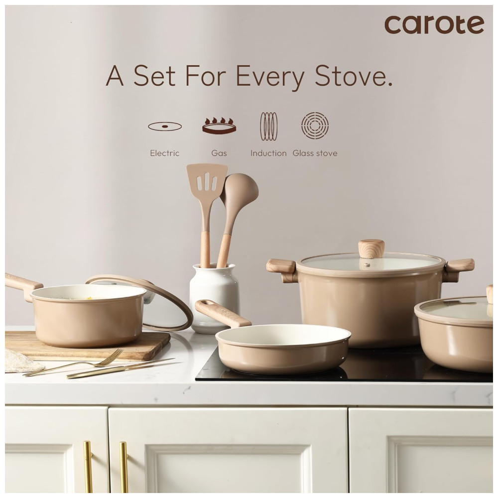 Jogo de Panelas e Frigideiras Cerâmicas CAROTE 15 peças Antiaderente Livre de PFOA e PFAS Marrom Taupe