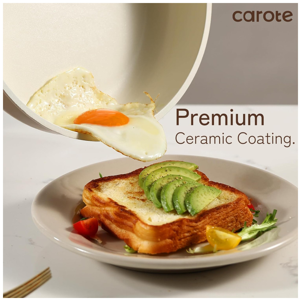 O Conjunto de Panelas e Frigideiras Cerâmicas CAROTE, com 15 peças, foi cuidadosamente desenvolvido com revestimento cerâmico atóxico para proporcionar alto desempenho antiaderente e elevar sua experiência culinária. Seu revestimento cerâmico suave não retém alimentos nem molhos, sendo fácil de limpar com um simples enxágue, mantendo suas panelas com aparência de novas. Livre de substâncias químicas nocivas como PFOA, PFAS, PTFE, chumbo e cádmio. Com design robusto e revestimento cerâmico de alta qualidade, este conjunto é construído para resistir ao uso diário. Sua superfície antiaderente garante facilidade na limpeza e desempenho consistente refeição após refeição. Compatível com fogões a gás, elétricos e por indução, este conjunto inclui frigideiras, panelas de diferentes tamanhos com tampas, concha para sopa, espátula sólida, espátula ranhurada e protetores de panela. Aproveite o prazer de cozinhar com qualidade e estilo.