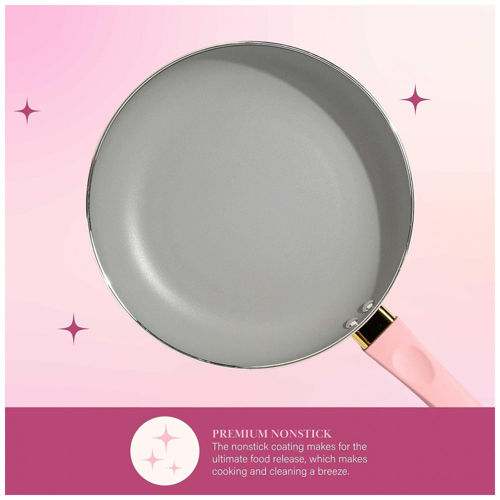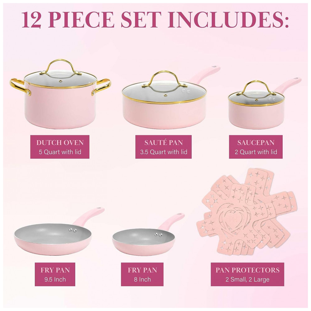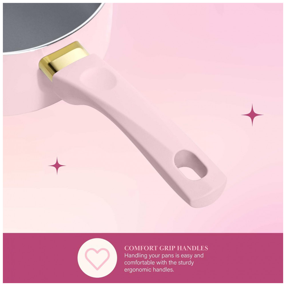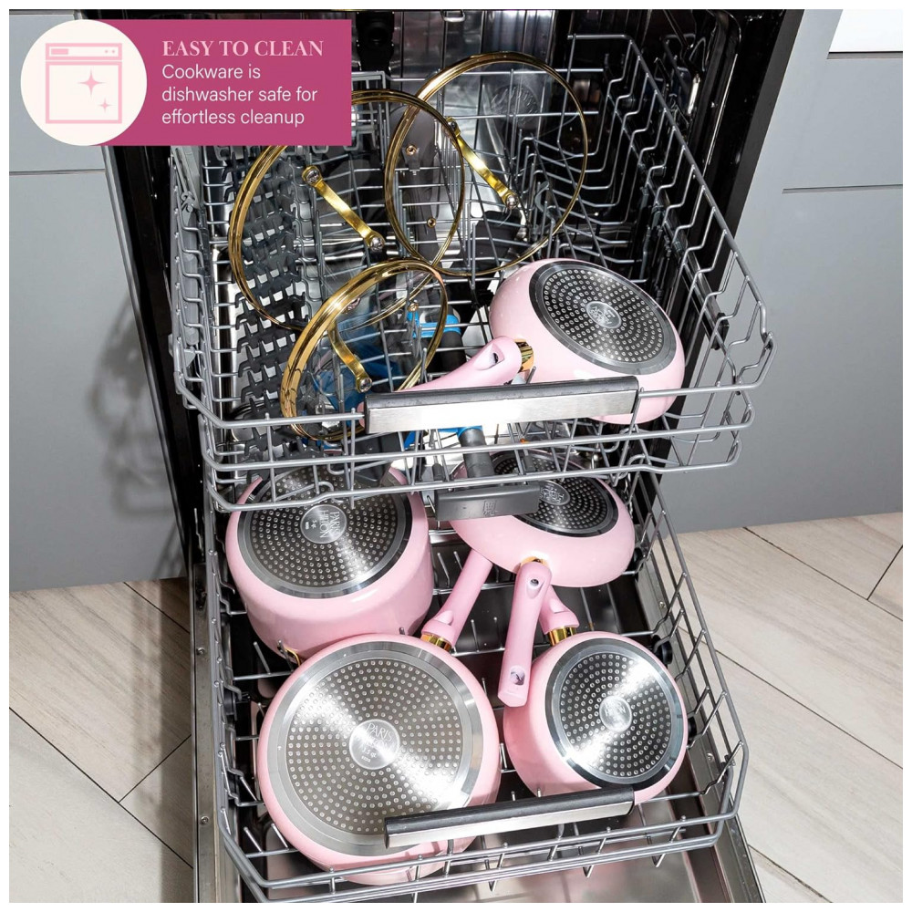 Jogo de Panelas e Frigideiras com Revestimento Antiaderente e Tampas de Vidro Temperado 12 Peças Paris Hilton Rosa