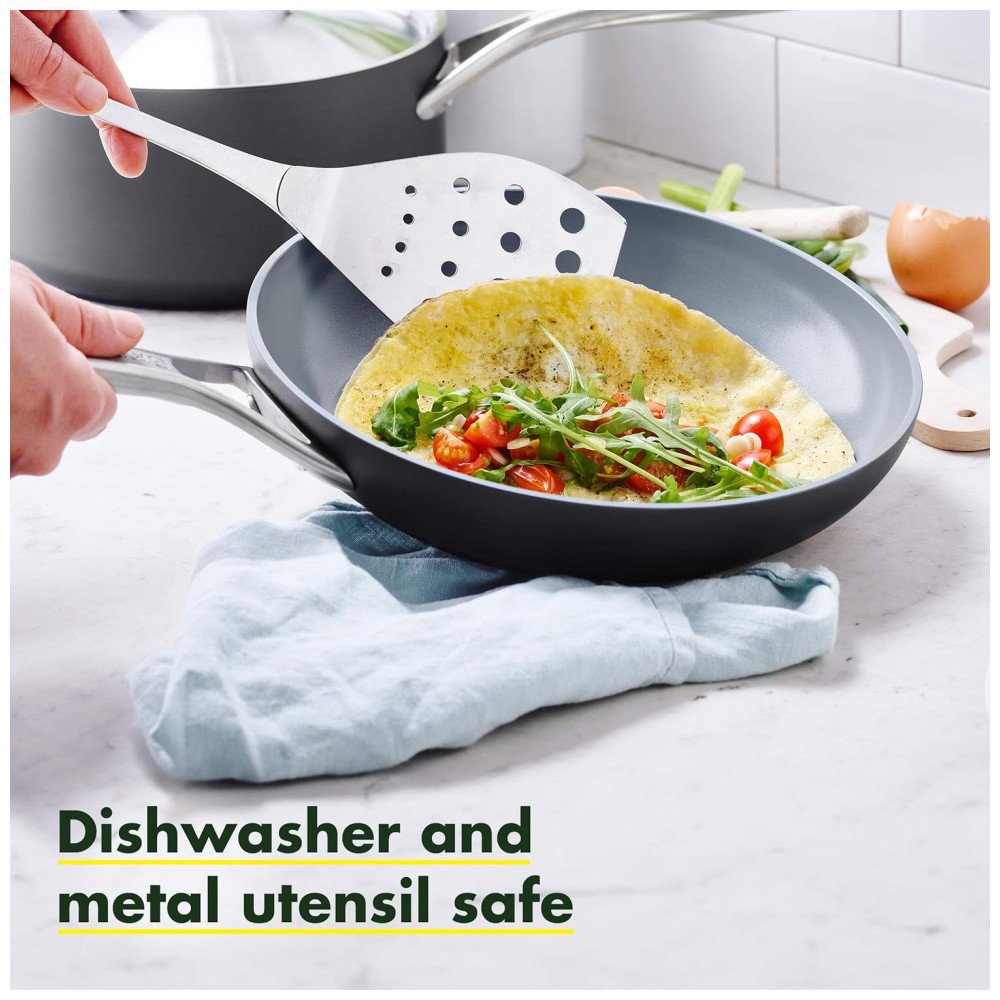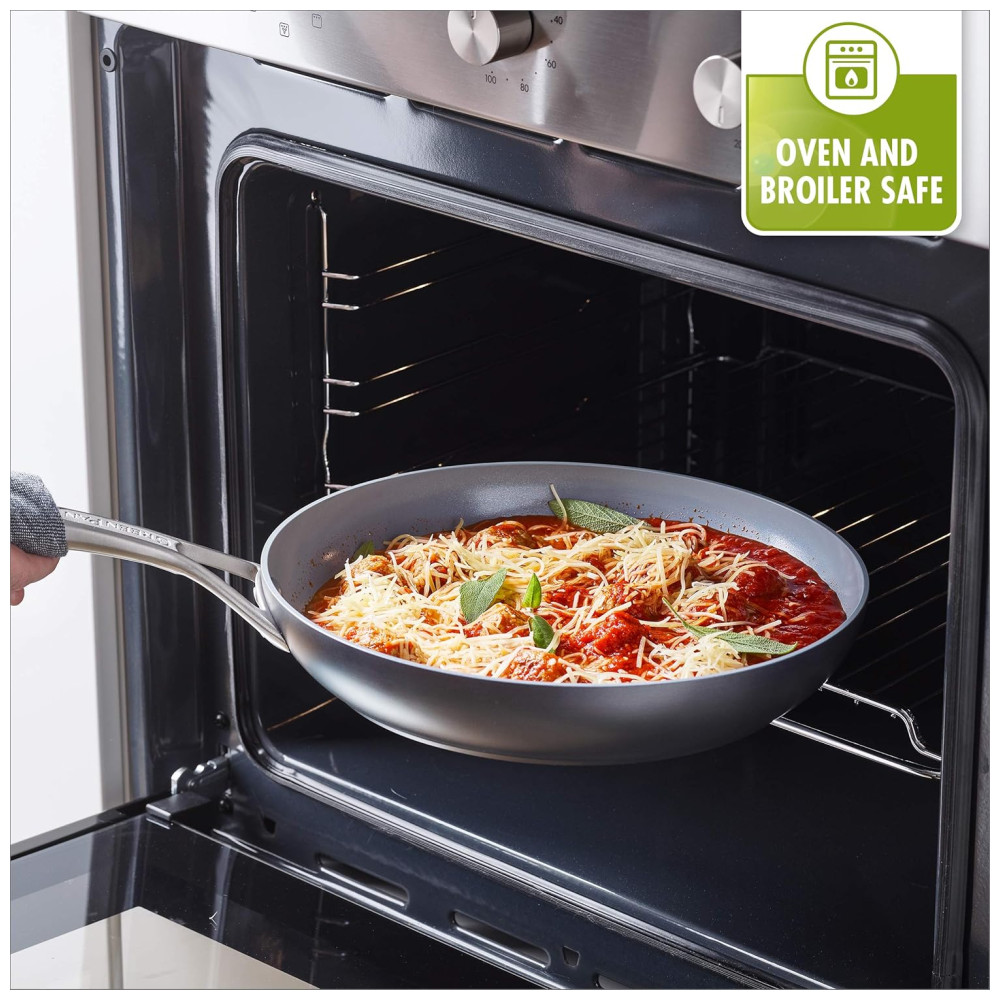 O revestimento antiaderente de cerâmica saudável Thermolon da GreenPan é livre de PFAS, PFOA, chumbo e cádmio, portanto, nunca liberará vapores tóxicos, mesmo se for acidentalmente superaquecido.