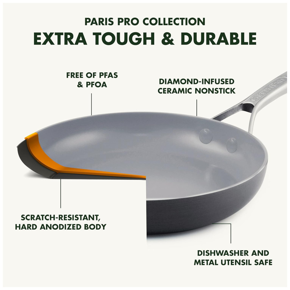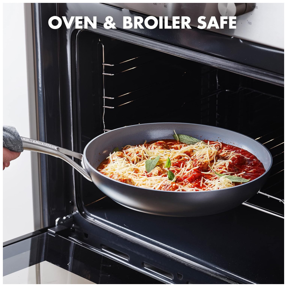 para utensílios de metal, o revestimento reforçado com diamante desta coleção é incrivelmente durável.