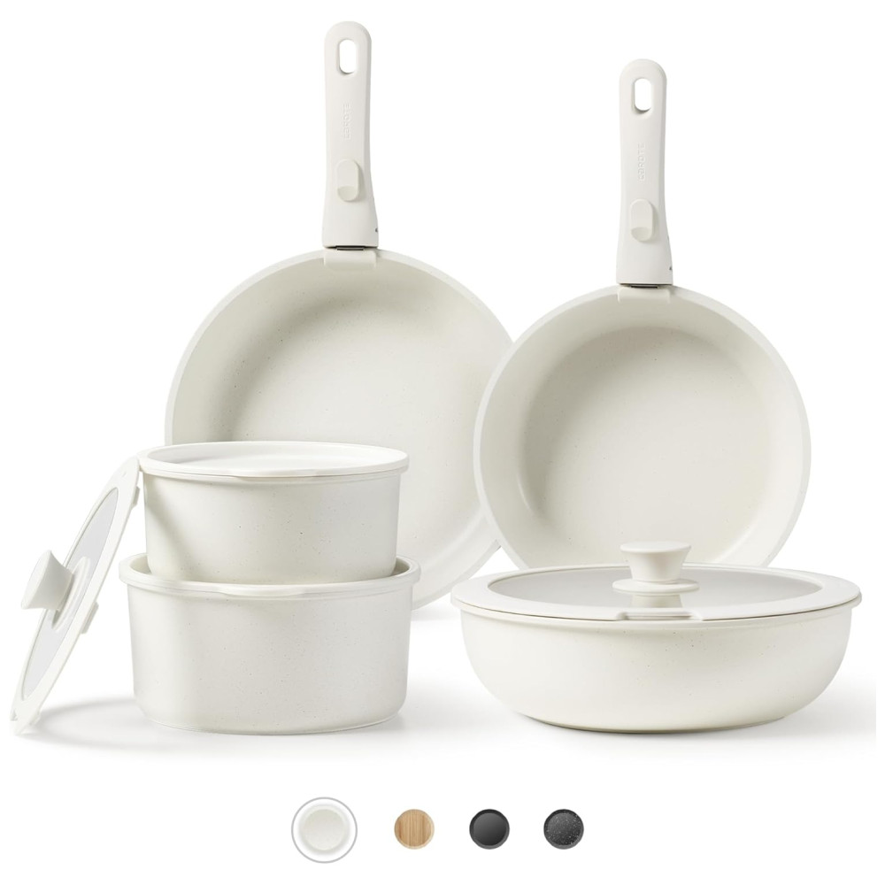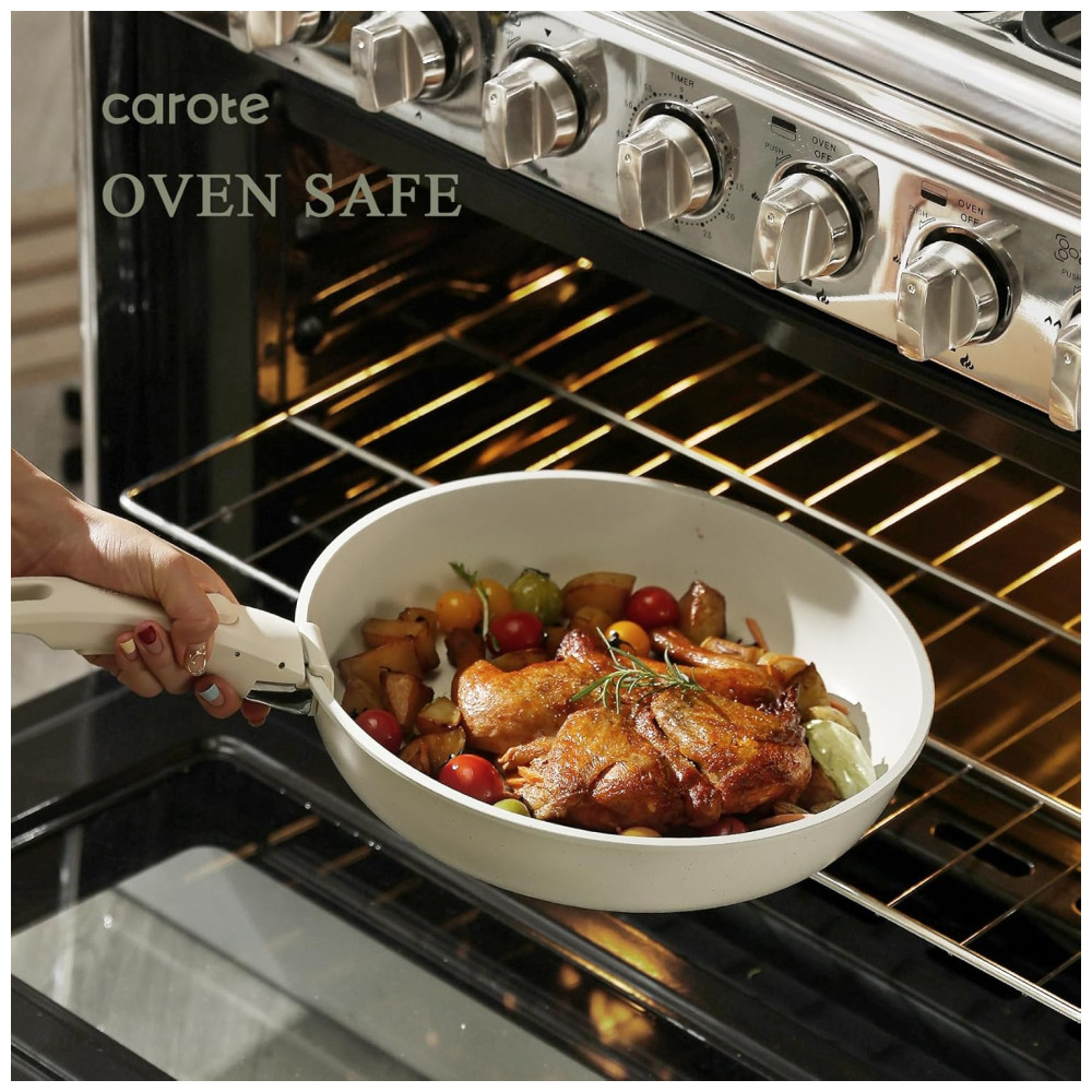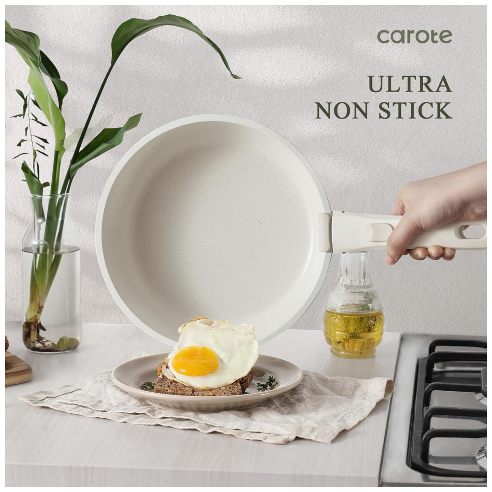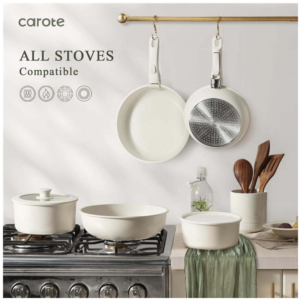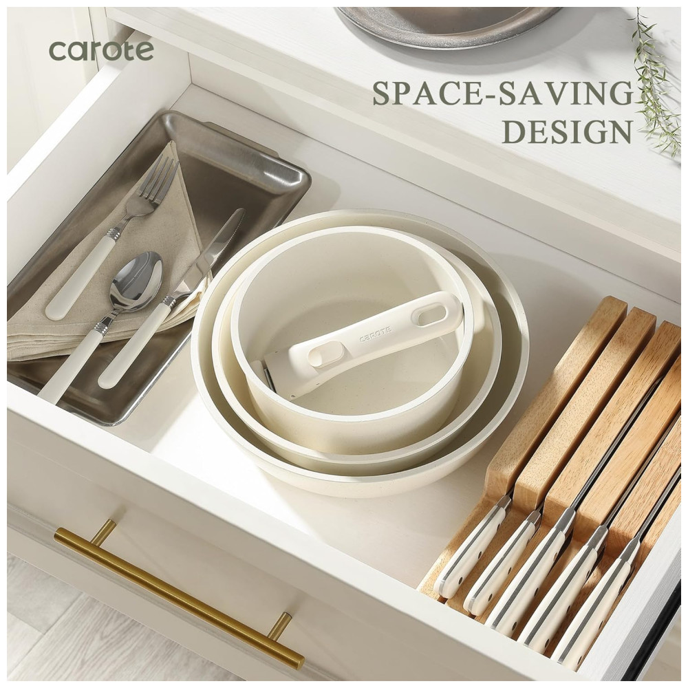 Jogo de Panelas e Frigideiras em Granito com Alça Removível e Revestimento Antiaderente 11 Peças CAROTE Creme Branco