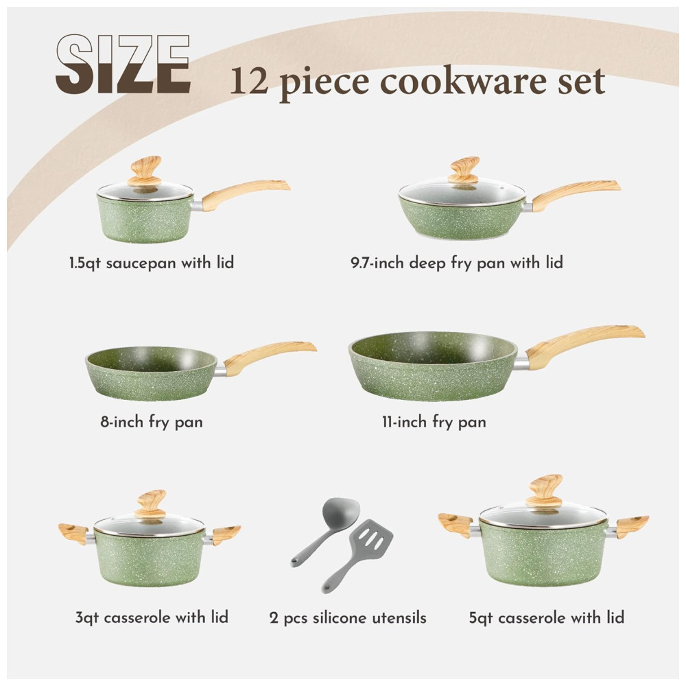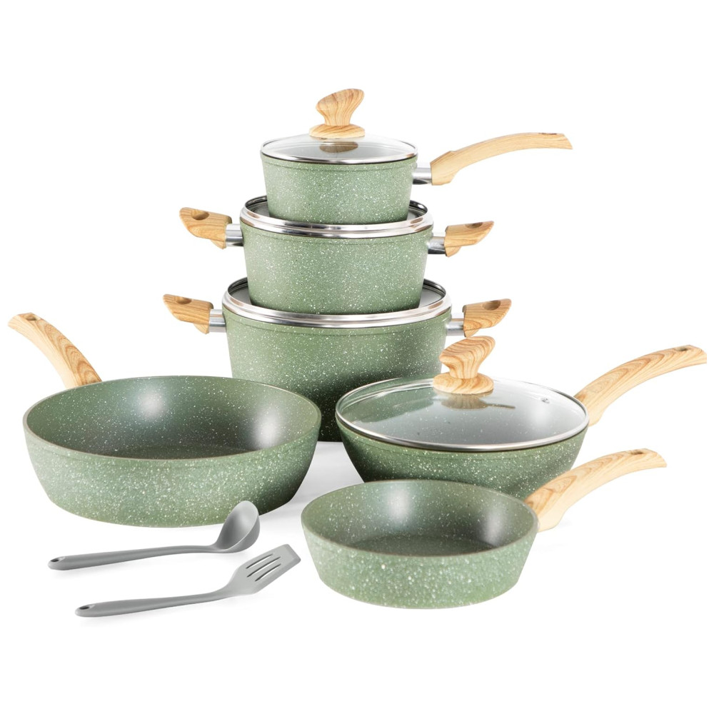 Conjunto de Panelas Kitchen Academy 12 peças Alumínio Antiaderente Granito Indução Livre de PFOA Verde