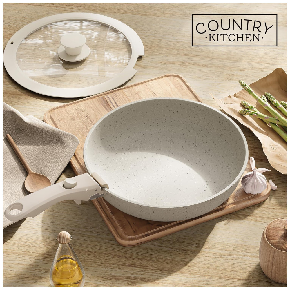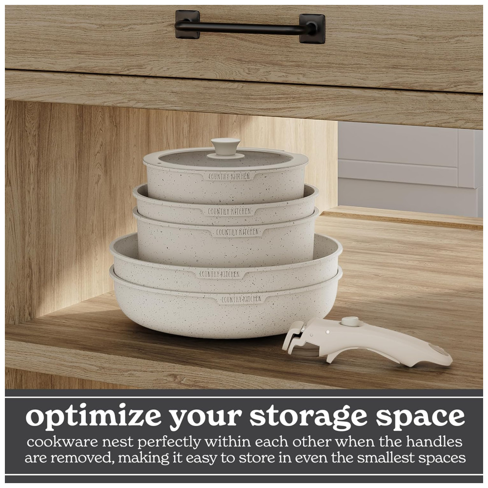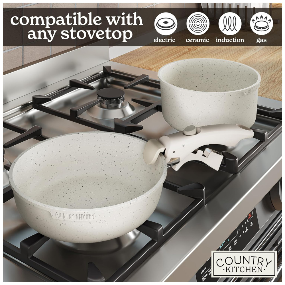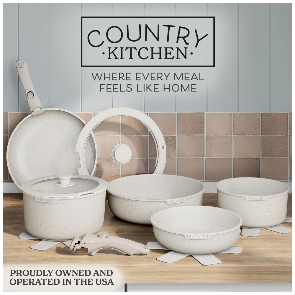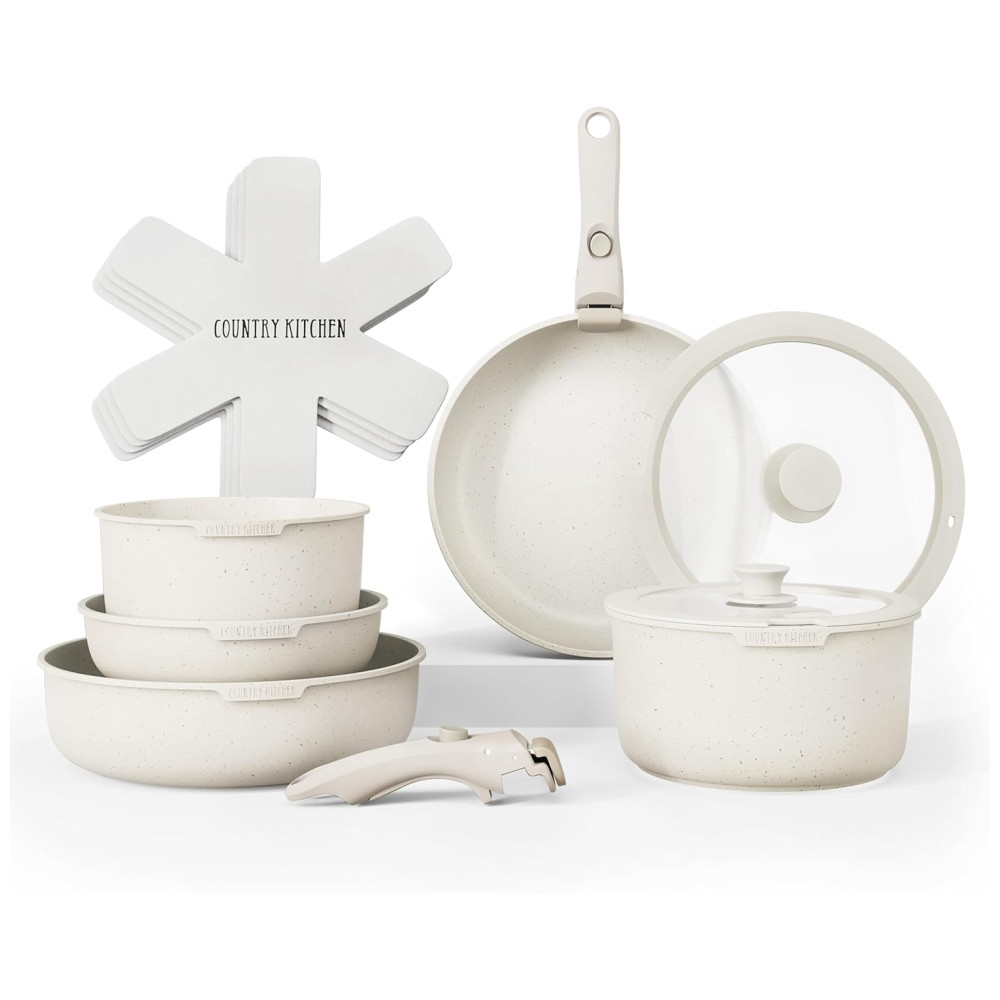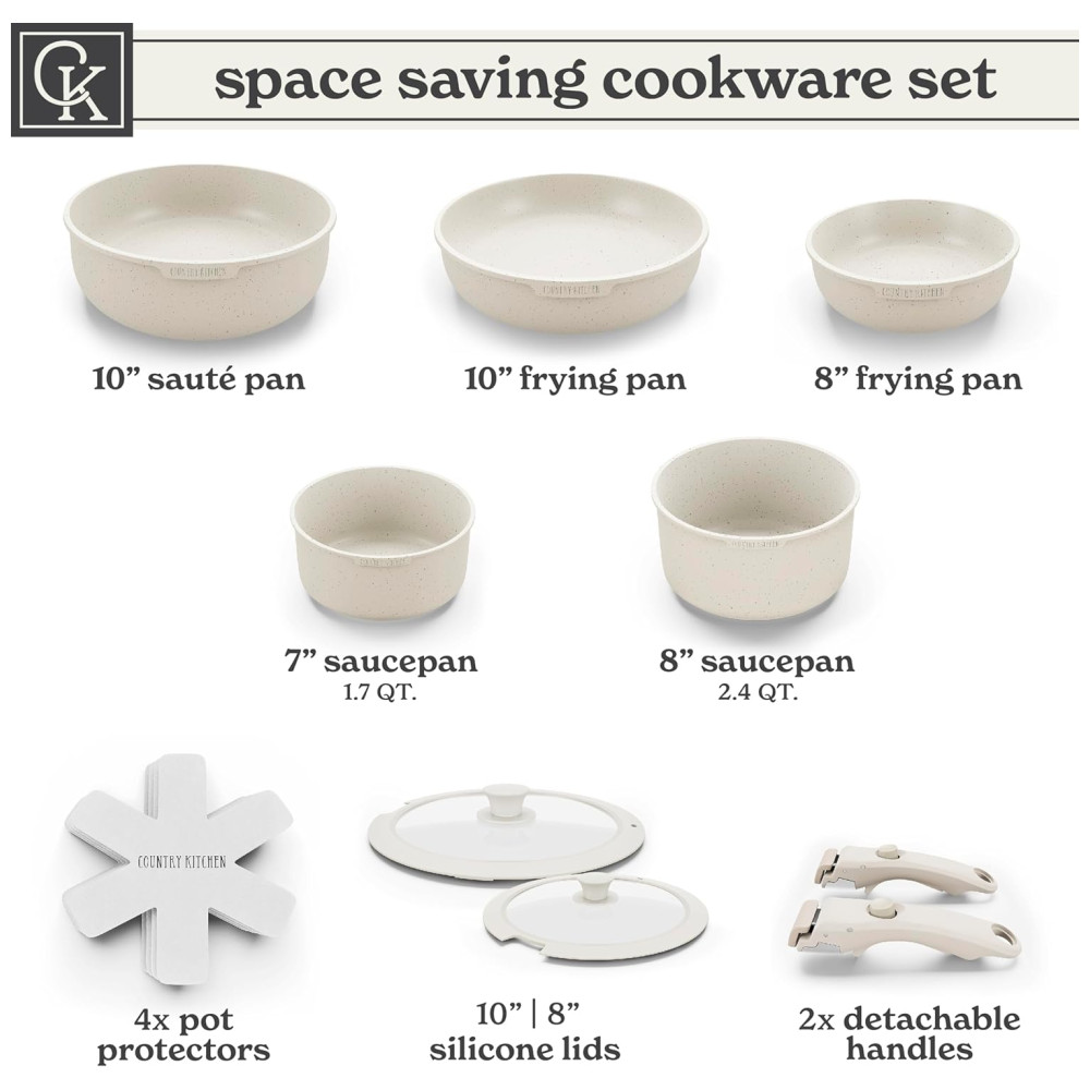 Jogo de Panelas e Frigideiras Material em Alumínio com 16 Peças e Cabo Removível Country Kitchen Creme