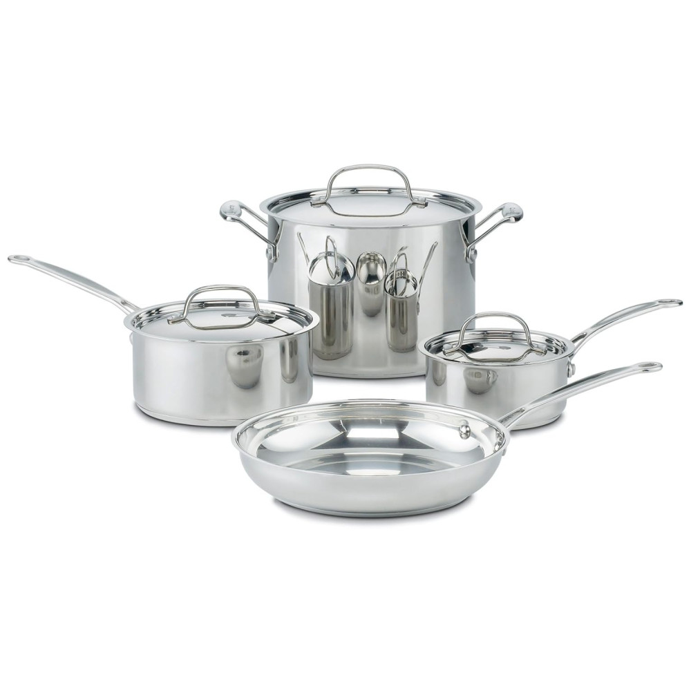 Jogo de Panelas em Aço Inoxidável com 7 Peças Acabamento Espelhado e Visual Clássico Cuisinart Chef’s Classic 77-7P1 Prata
