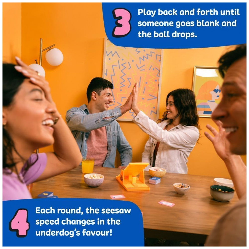 Sinta a adrenalina da competição neste jogo emocionante! Duas equipes se enfrentam em categorias diversas, com um timer interativo de marblerun que muda de velocidade, garantindo reviravoltas até o último segundo. Com 150 categorias únicas, este jogo é perfeito para noites em família ou festas com amigos. Fácil de aprender e rápido de jogar, desafie seus reflexos e conhecimentos para se consagrar campeão em 4 rodadas!