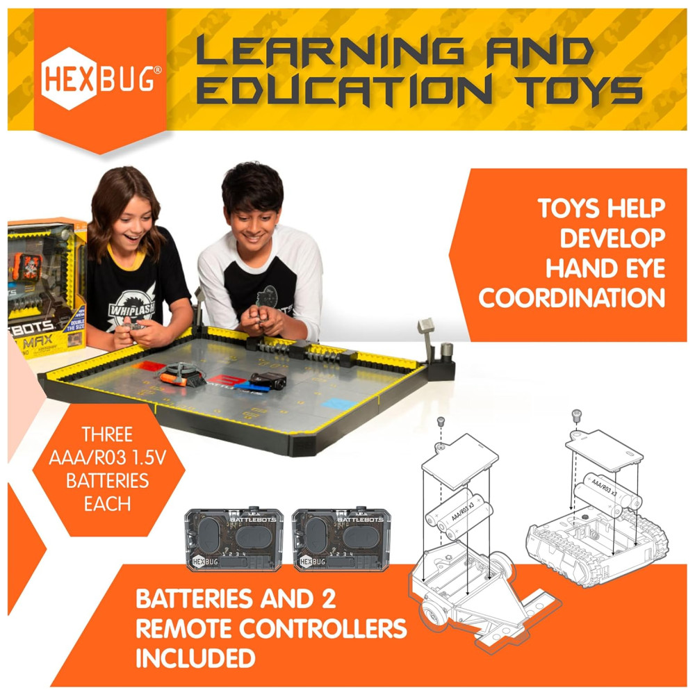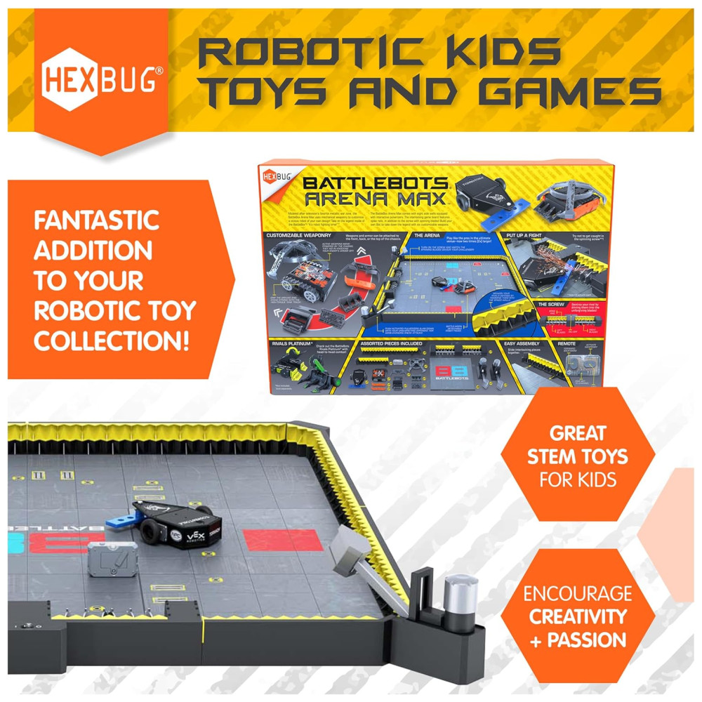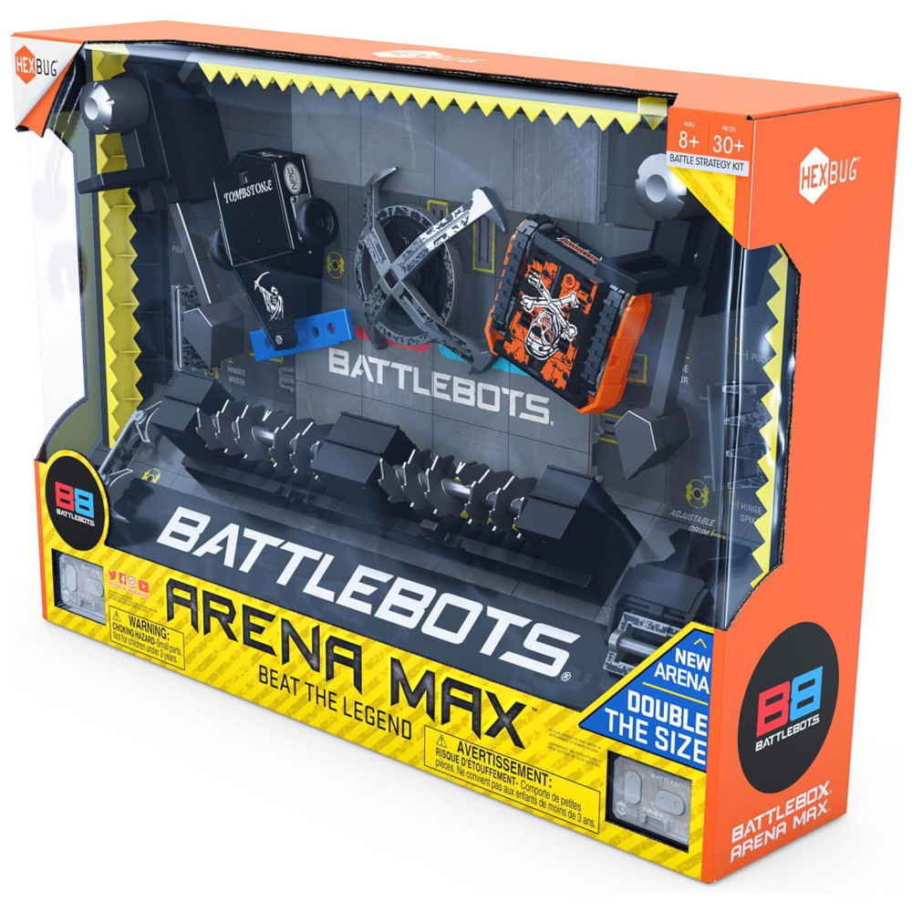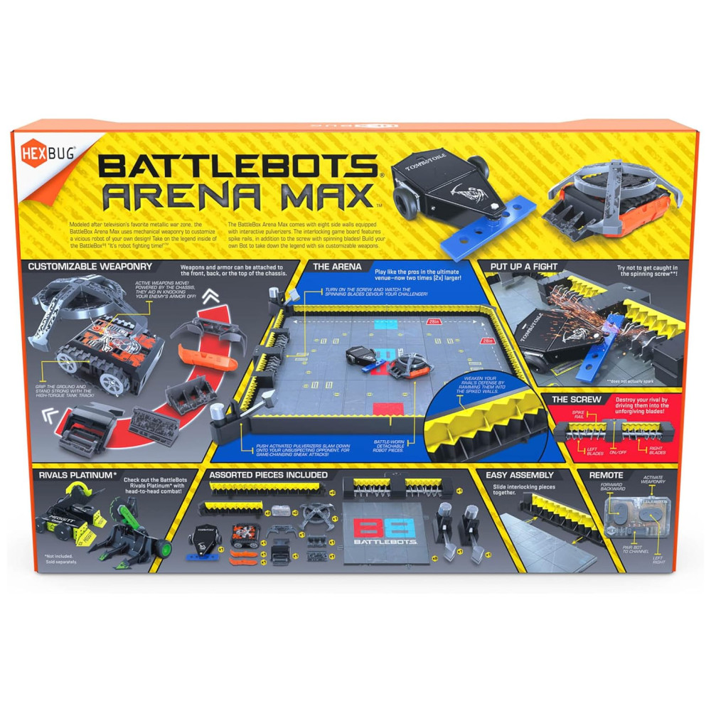 Completo com o antigo campeão BattleBots, Tombstone e várias configurações Build Your Own Tank e s de arena interativas, a estratégia é a chave no Arena MAX Vem com lápide e um robô Build Your Own Tank com uma gama completa de duras e s.