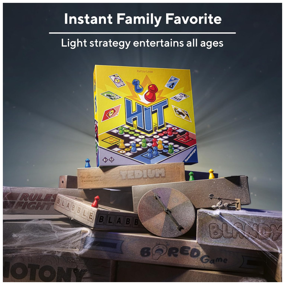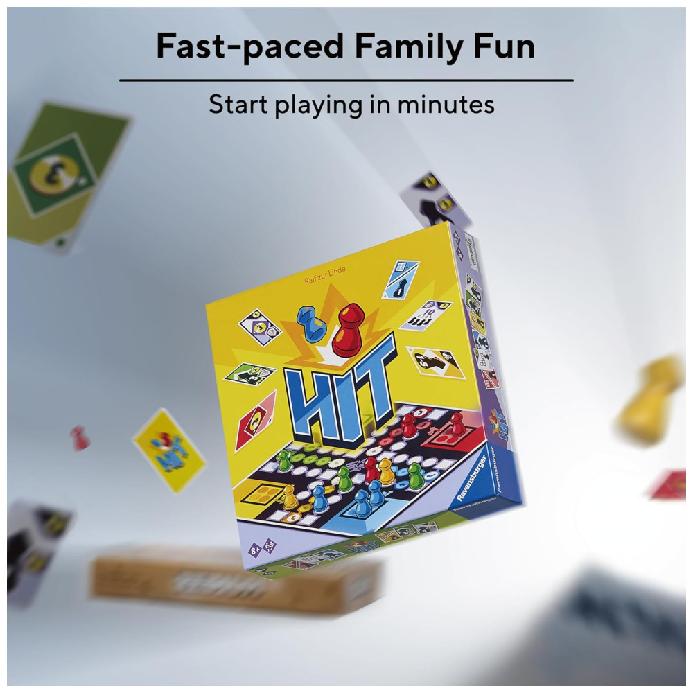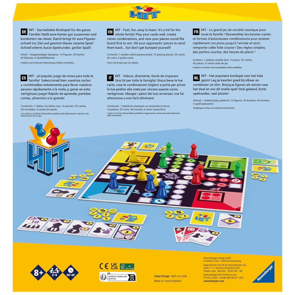 O HIT é um jogo de corrida e construção de baralhos acelerado, perfeito para fãs de jogos a partir de 8 anos de idade. Ele combina a ideia básica de jogos de corrida clássicos como Pachisi ou Ludo, mas sem dados, apenas cartas. O objetivo é jogar as cartas certas para levar suas figuras à linha de chegada o mais rápido possível. A característica especial é que cada jogador tem seu próprio baralho e, comprando cartas adicionais, são criados conjuntos de cartas individuais que se tornam mais fortes. Com sorte, tática e estratégia, quem conseguir levar suas quatro peças à linha de chegada primeiro usando as combinações de cartas mais inteligentes vence. Ultrapasse, elimine, troque de lugar e divirta-se! Com jogabilidade fácil de aprender, HIT oferece uma mistura inteligente de jogo de tabuleiro clássico e elementos de construção de baralhos super leves. Ideal para presentear em aniversários, Natal ou Páscoa.