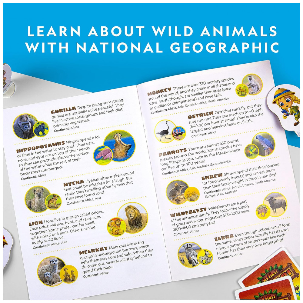 Jogo de Tabuleiro National Geographic Minha Primeira Safári para Crianças 46 Jogo de Animais para Crianças e Adultos Diversão Cooperativa Perfeita pa