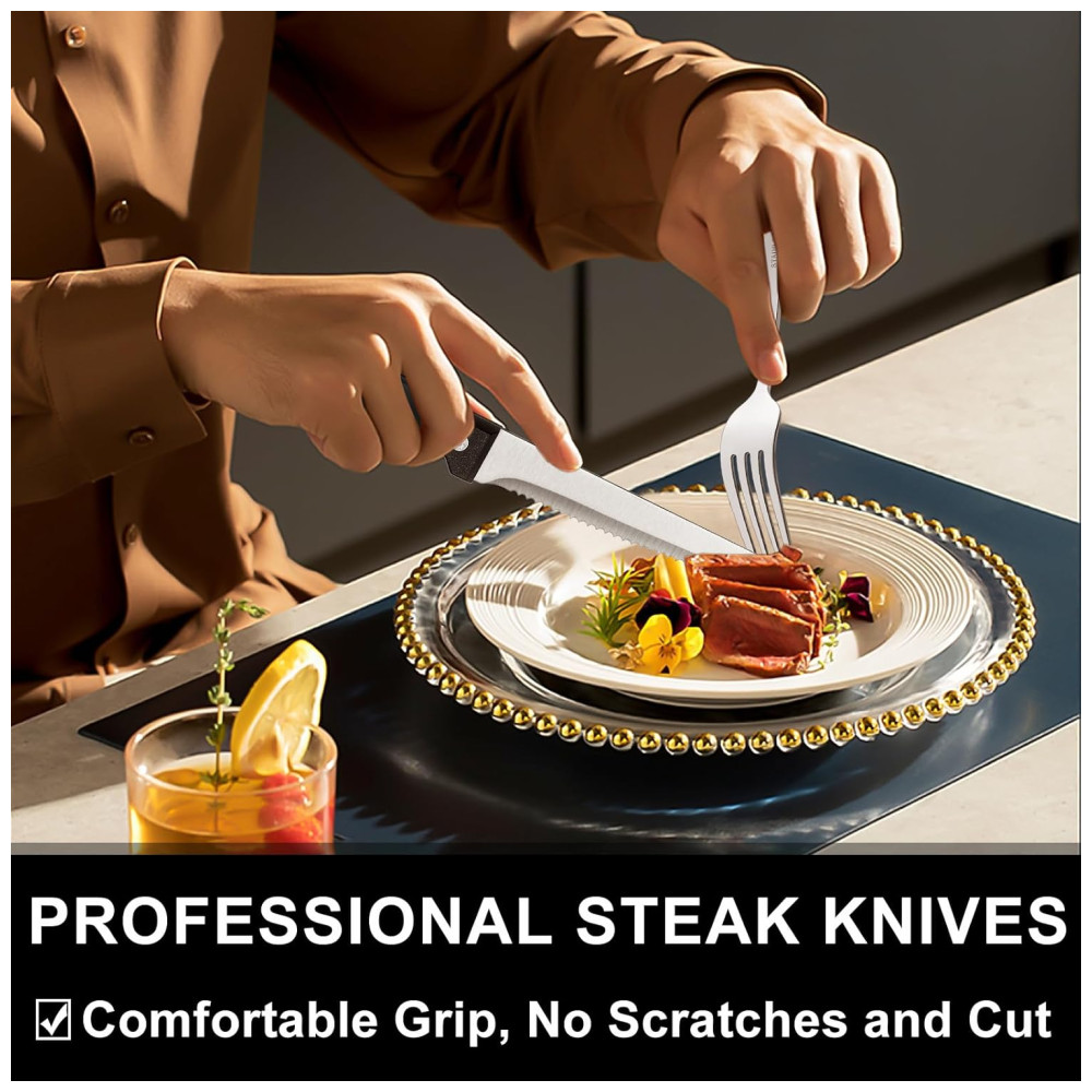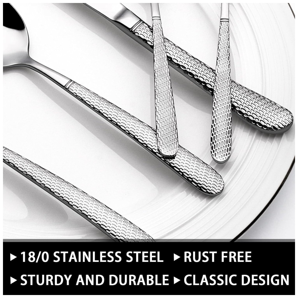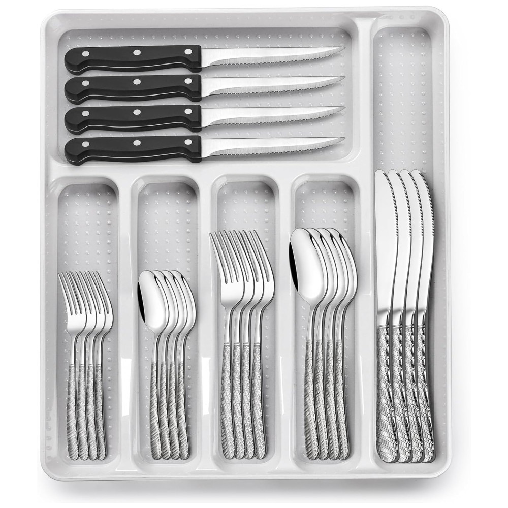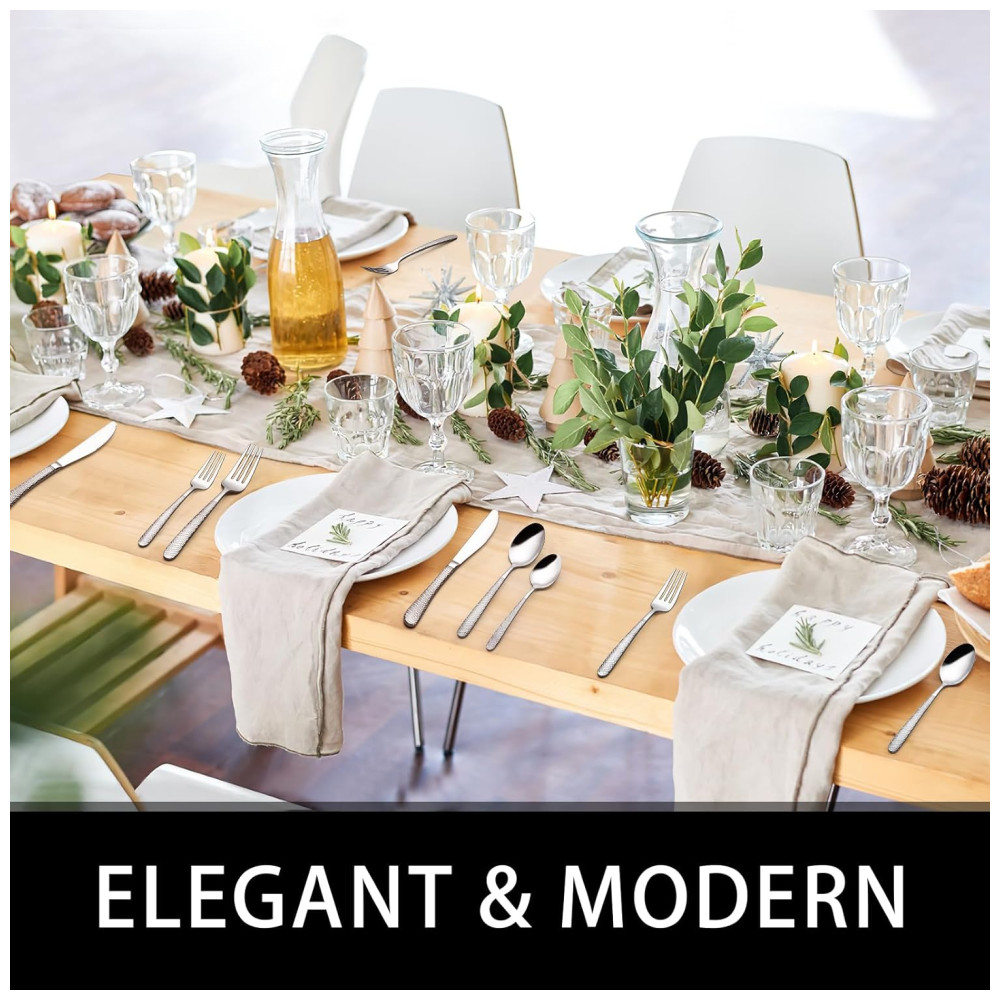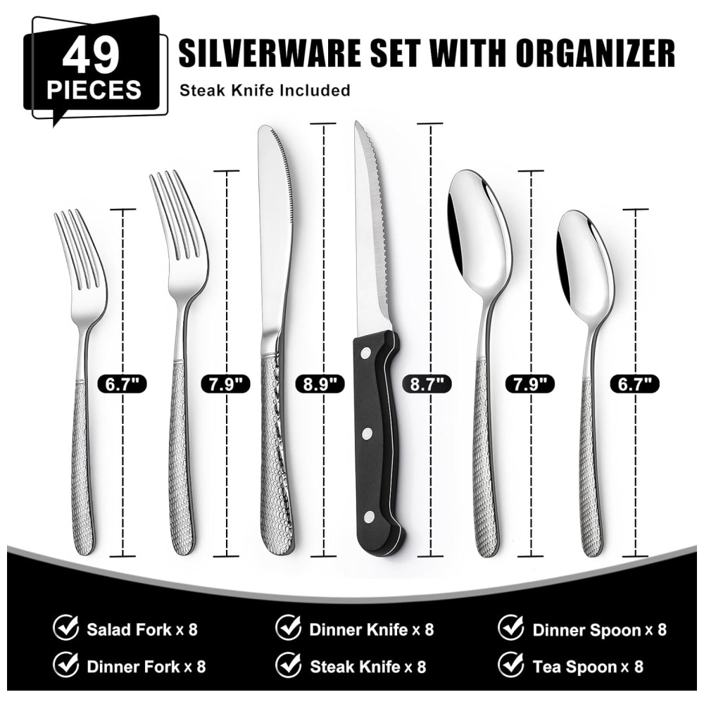 Jogo de Talheres de Prata Martelada com Organizador – 49 Peças Aço Inox de Alta Resistência p/ 8 Pessoas Inclui Facas de Mesa Durável e EleganteEWFEN