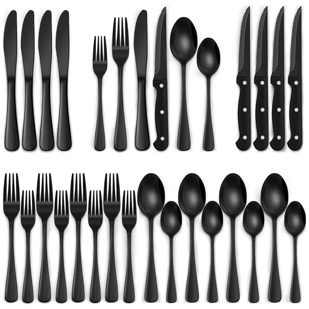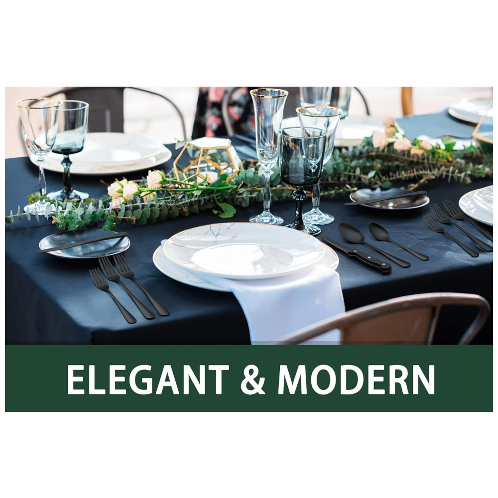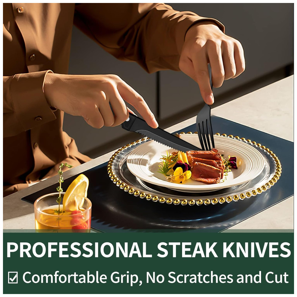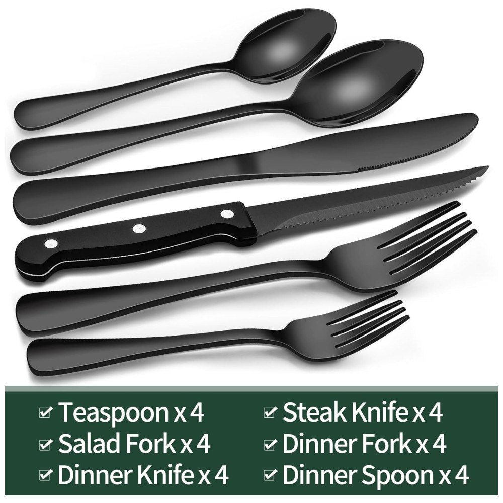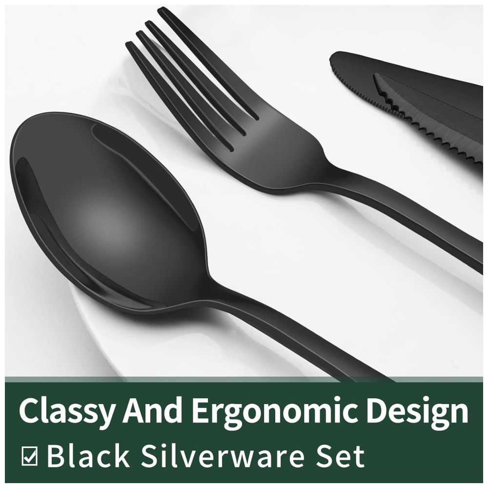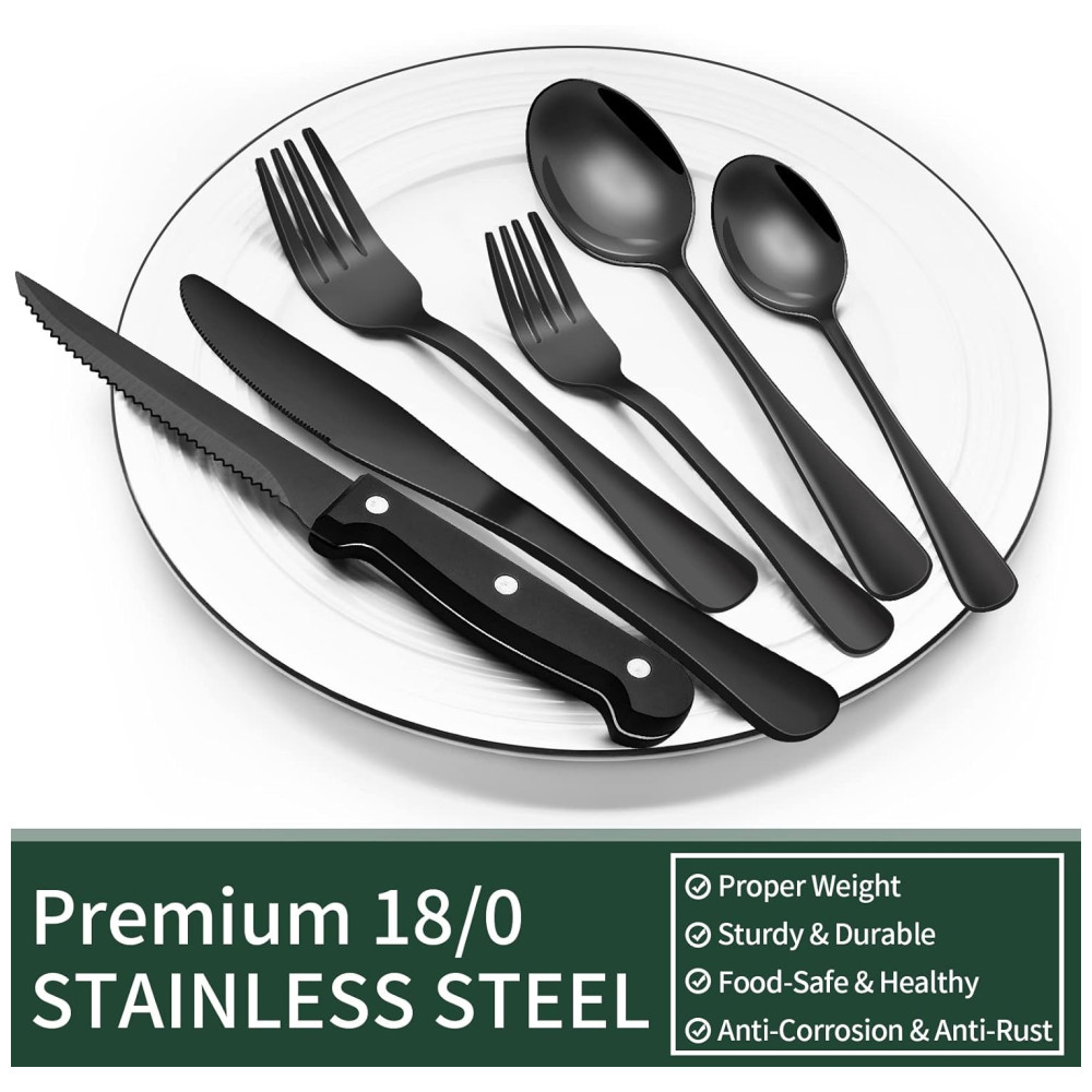 Jogo de Talheres Sofisticado Preto de 24 Peças com Facas de Churrasco – Aço Inox Premium p/ Casa e Restaurante – Design Ergonômico e DurávelEWFEN