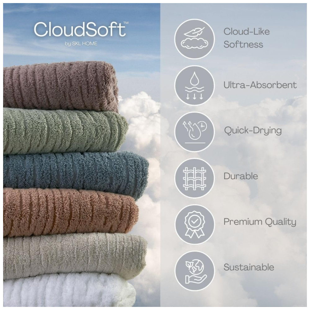Jogo de Toalhas de Luxo Absorventes e Macias com 6 Peças e Material de Algodão CloudSoft SKL Home Branca