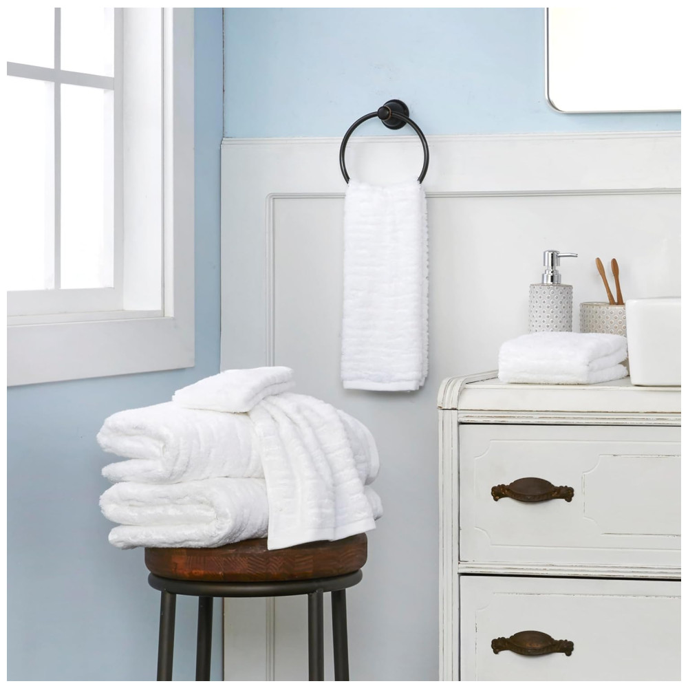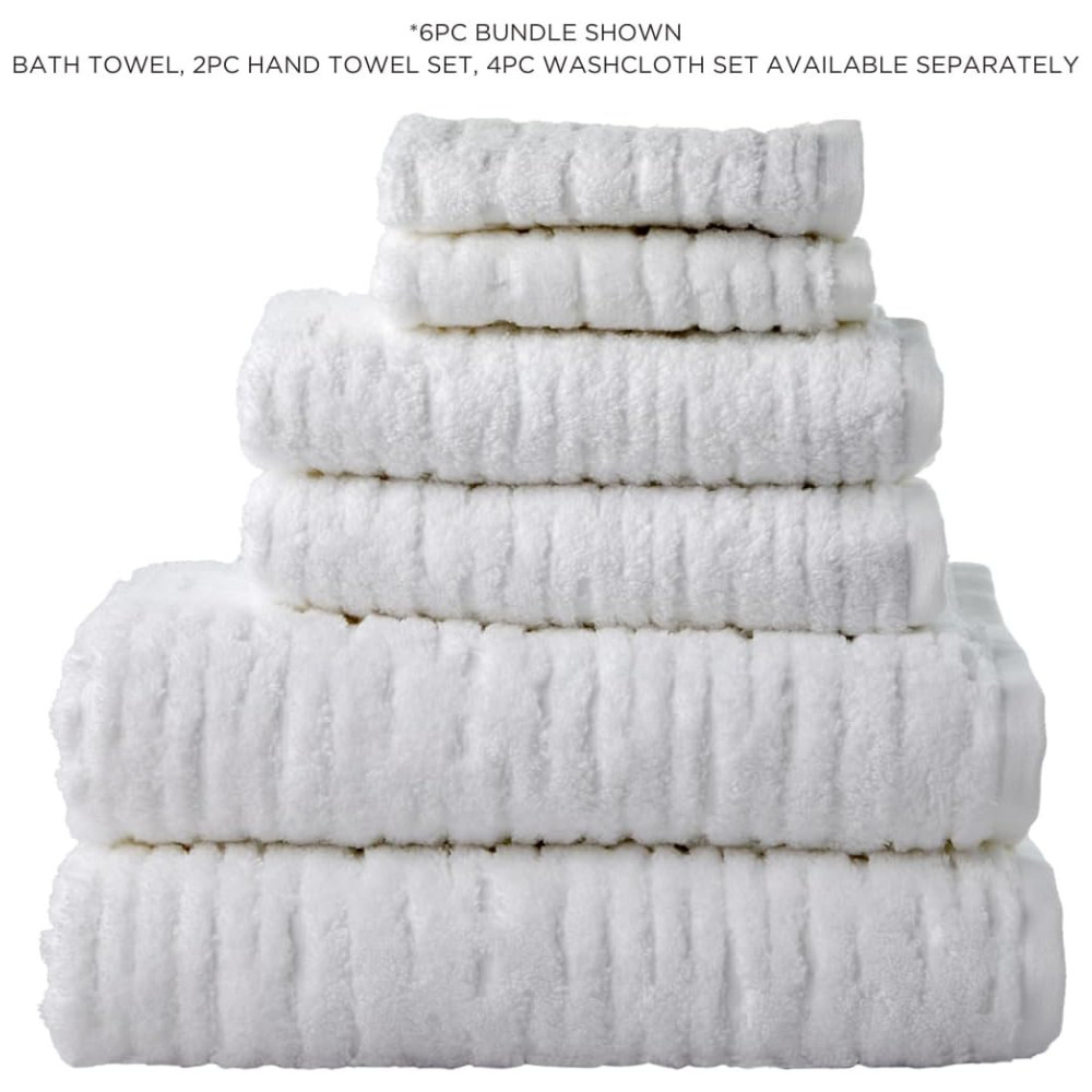O conjunto inclui 2 toalhas de banho (76 x 137 cm), 2 toalhas de mão (41 x 71 cm) e 2 toalhas de rosto (33 x 33 cm), todas confeccionadas em jacquard terry com fios finos e zerotwist, oferecendo um loft premium. Com um peso de 600 GSM, essas toalhas garantem maciez e absorção superiores sem volume excessivo.