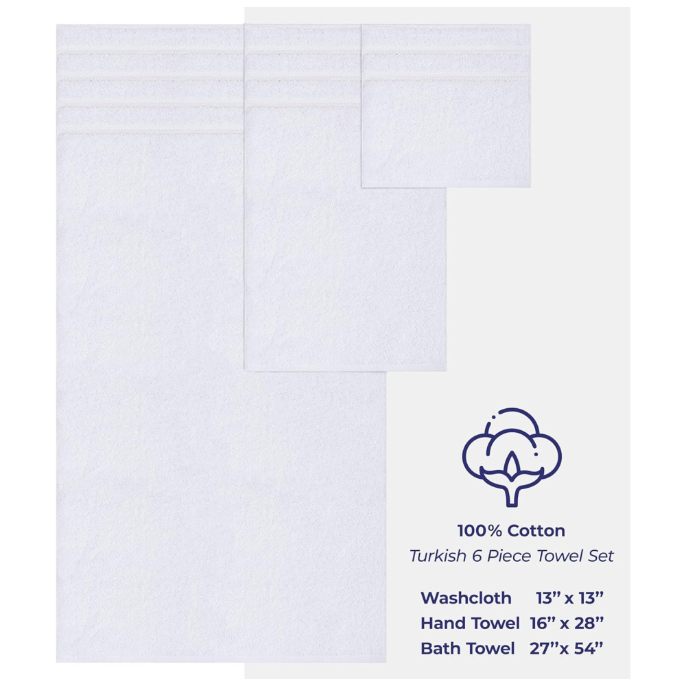 Este jogo de toalhas de luxo turco é composto por 6 peças essenciais: 2 toalhas de banho (68,58 cm x 137,16 cm), 2 toalhas de mão (40,64 cm x 71,12 cm) e 2 toalhas de rosto (33,02 cm x 33,02 cm). Feitas em 100% algodão turco, essas toalhas possuem uma densidade de 600 GSM, tornando-as macias, altamente absorventes e de secagem rápida. São perfeitas para o uso após o banho, proporcionando conforto ao corpo, mãos e rosto.