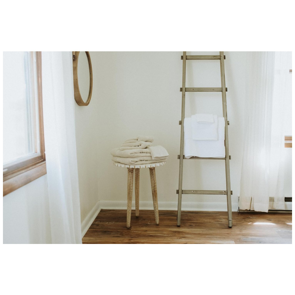 O conjunto completo de 6 peças inclui 2 toalhas de rosto de 30 x 30 cm, 2 toalhas de mão de 71 x 46 cm e 2 toalhas de banho de 132 x 76 cm, garantindo que todos os aspectos da sua experiência de banho sejam cobertos com luxo. Seja ao se secar ou ao se envolver em conforto, essas toalhas oferecem maciez e absorção inigualáveis.