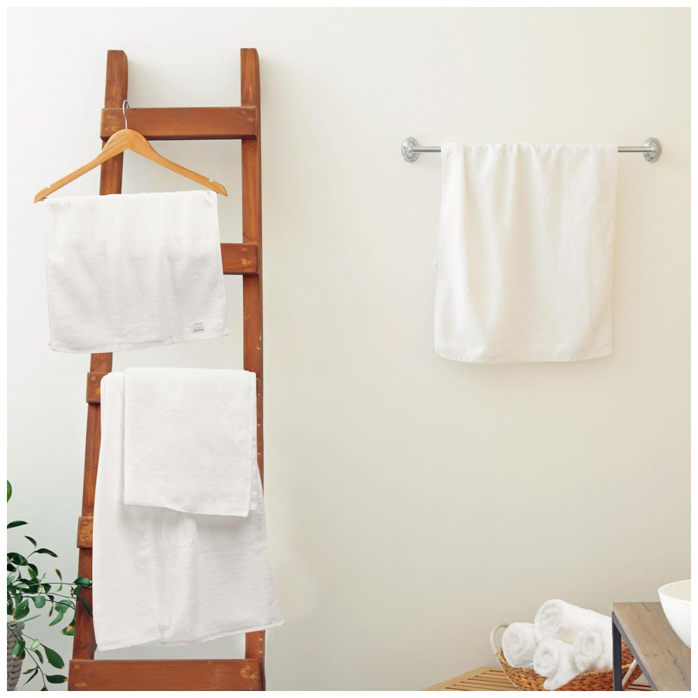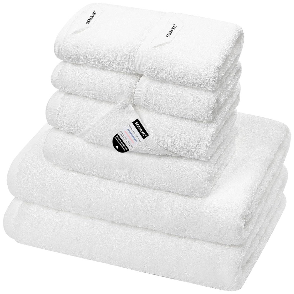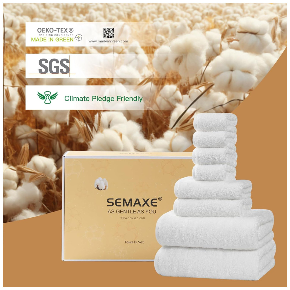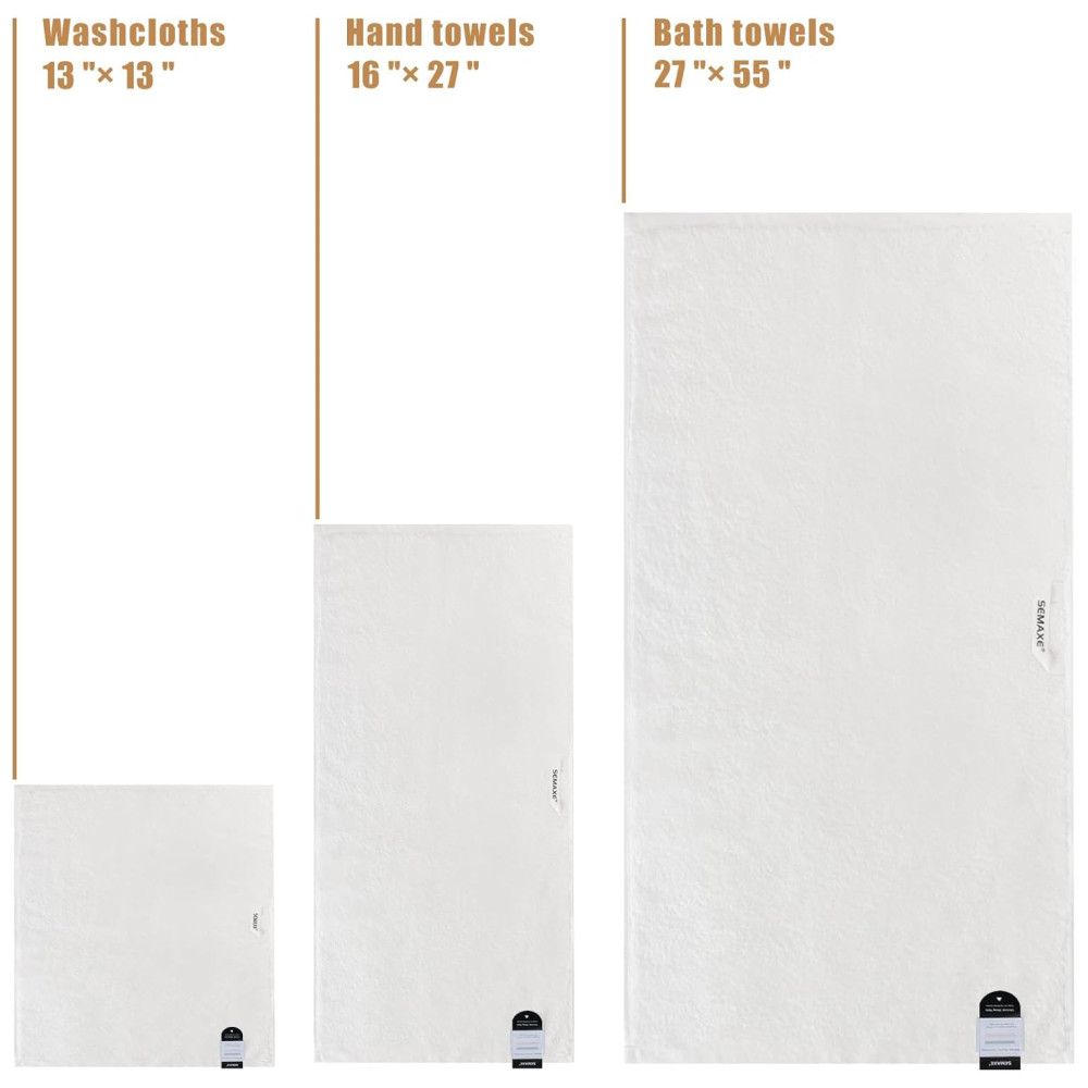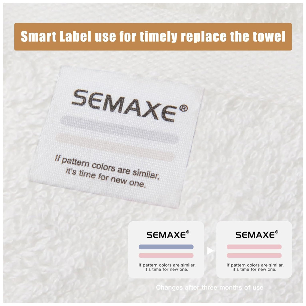 Jogo de Toalhas Ultra Macia e Absorvente com 8 Peças Material 100% Algodão Alças para Pendurar e Etiquetas de Ciclo de Vida Nano-Bio SEMAXE Branco