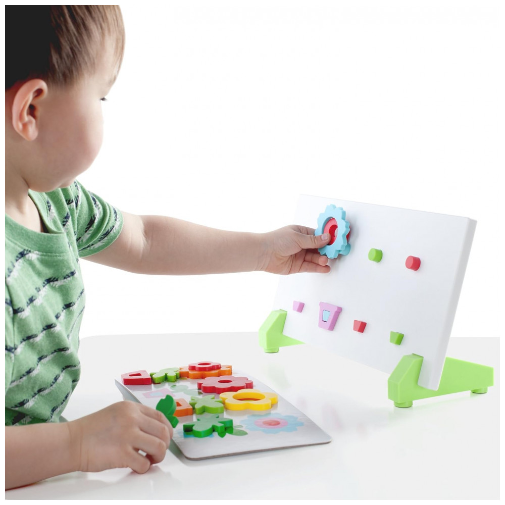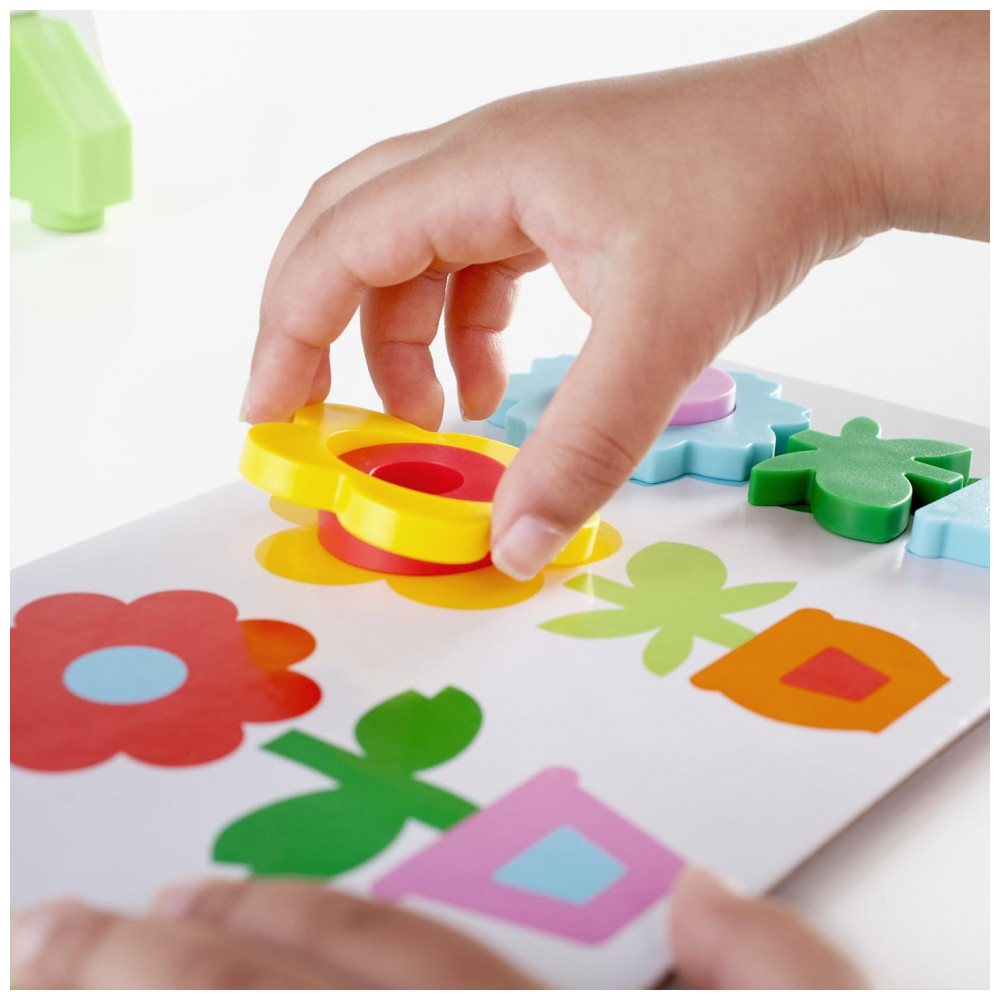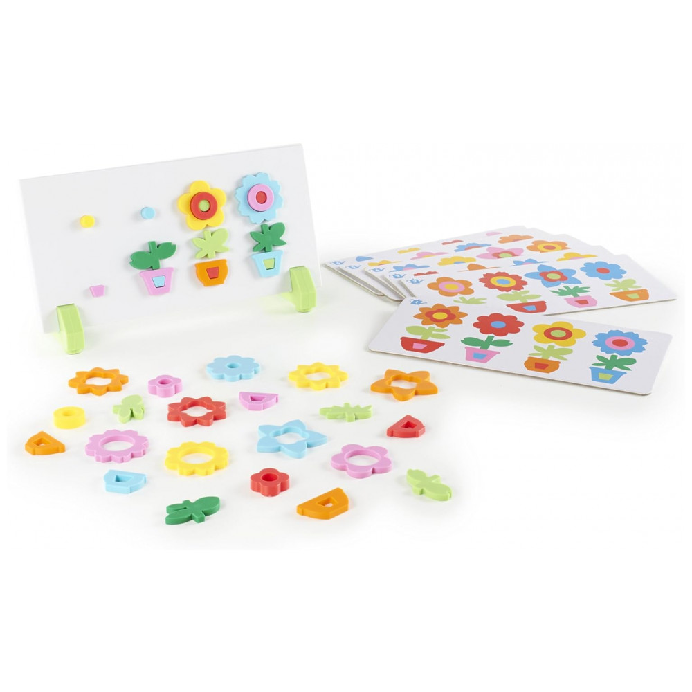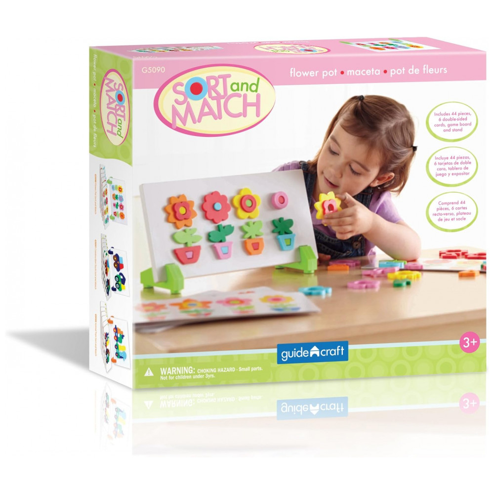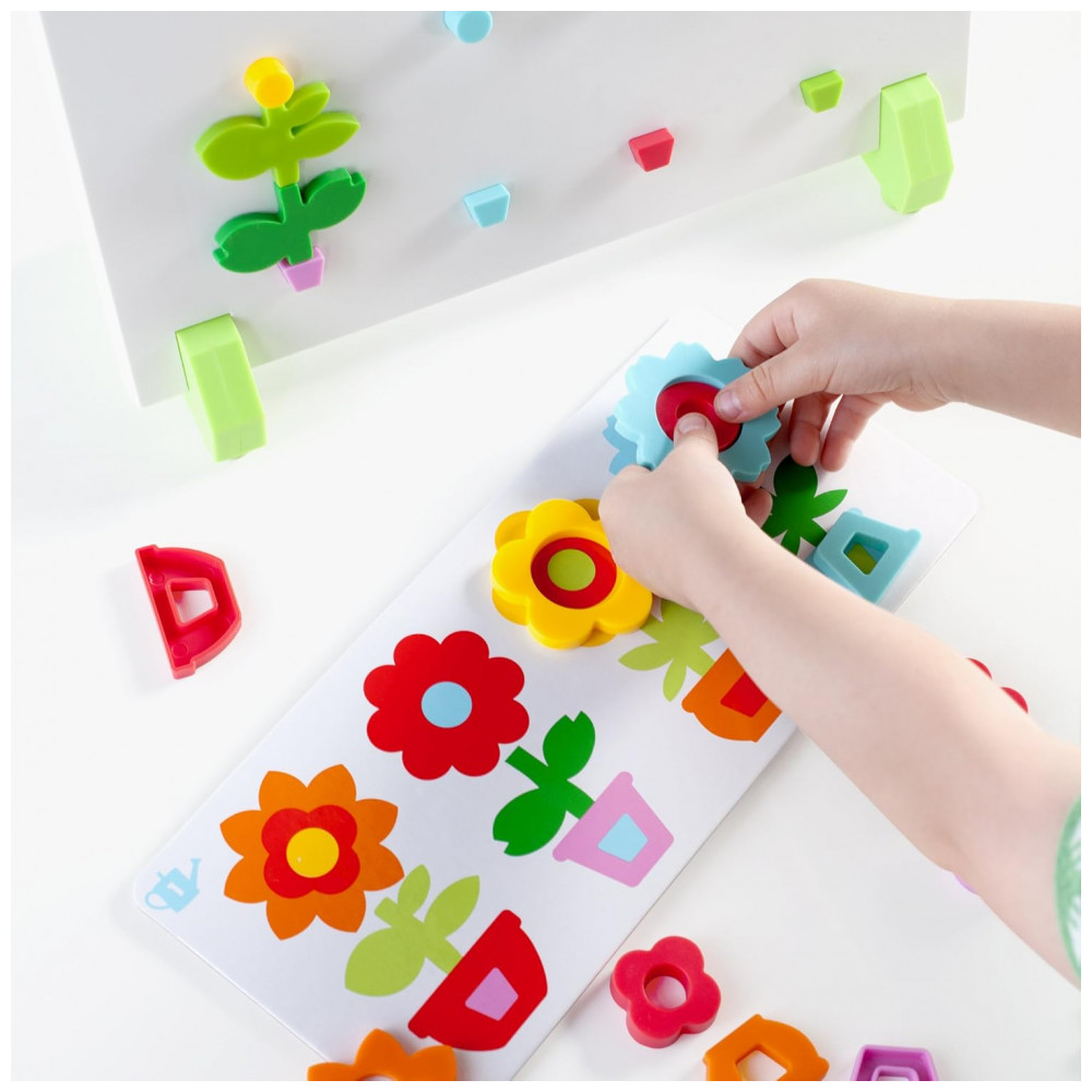 O Guidecraft Flower Pot Sort and Match é um jogo magnético de ordenação e pareamento indicado para crianças a partir de 3 anos, que trabalha reconhecimento de padrões, sequência e combinação de cores em um painel vertical. As crianças utilizam as peças em formato de vasos, caules e flores para reproduzir os modelos sugeridos nos cartões ou criar suas próprias composições florais, reforçando percepção visual e raciocínio lógico.