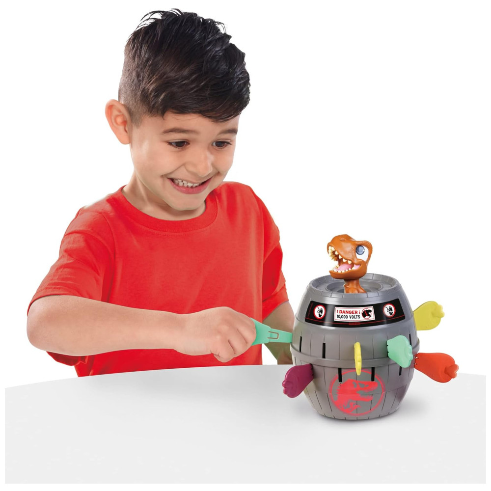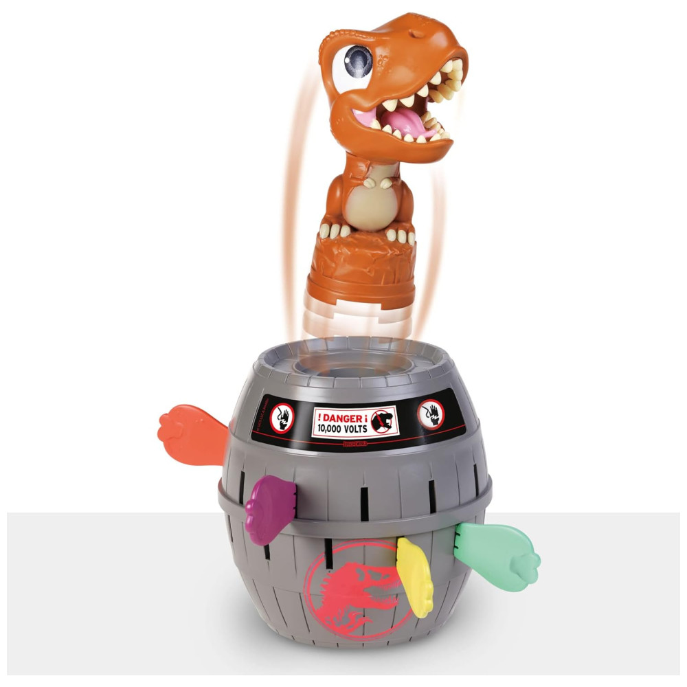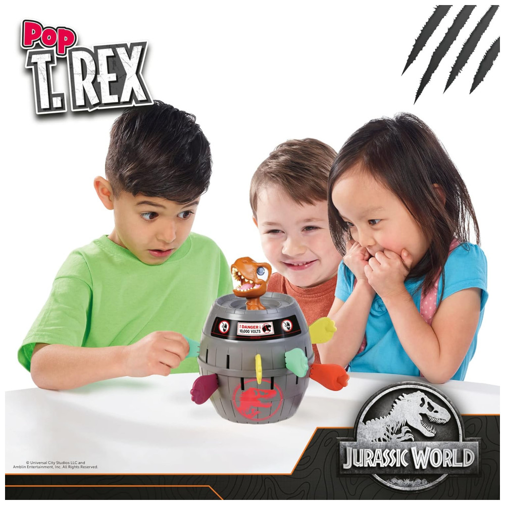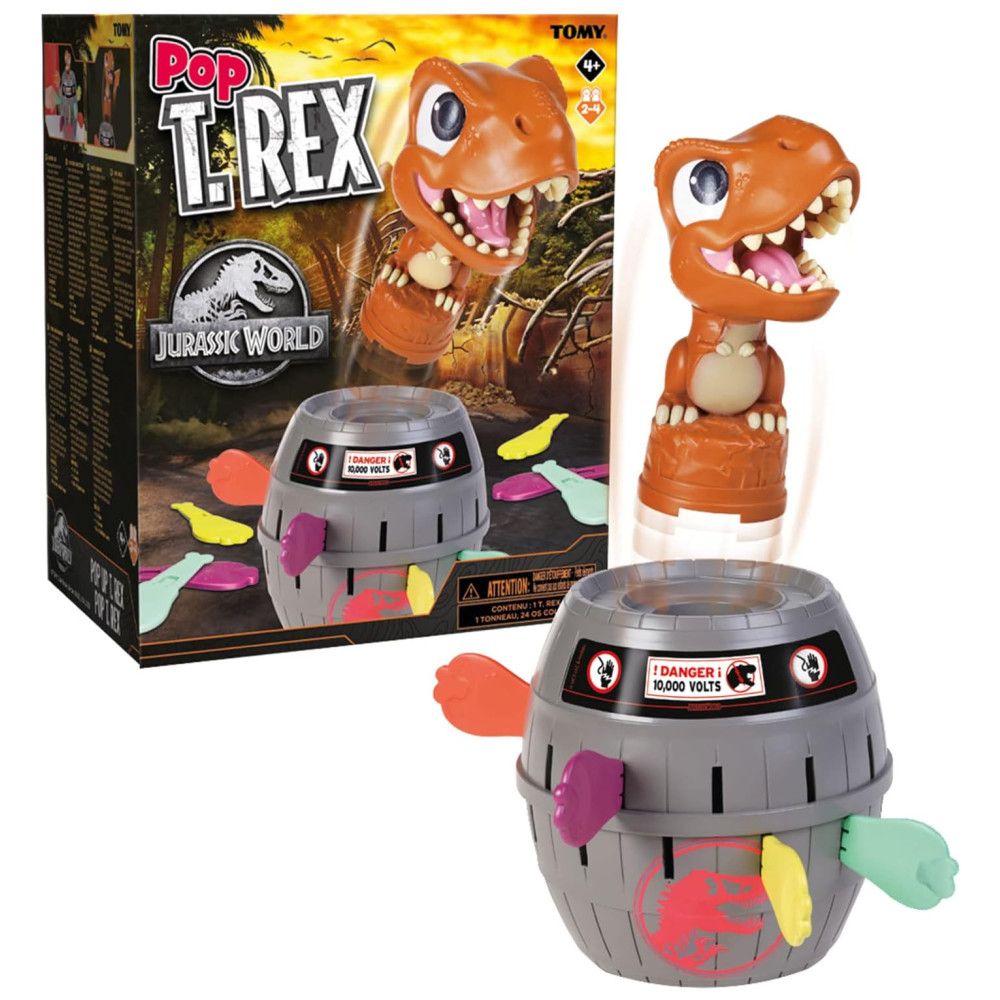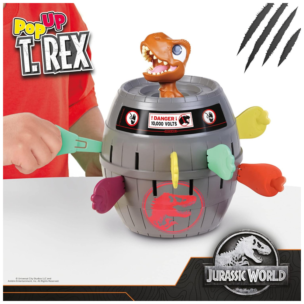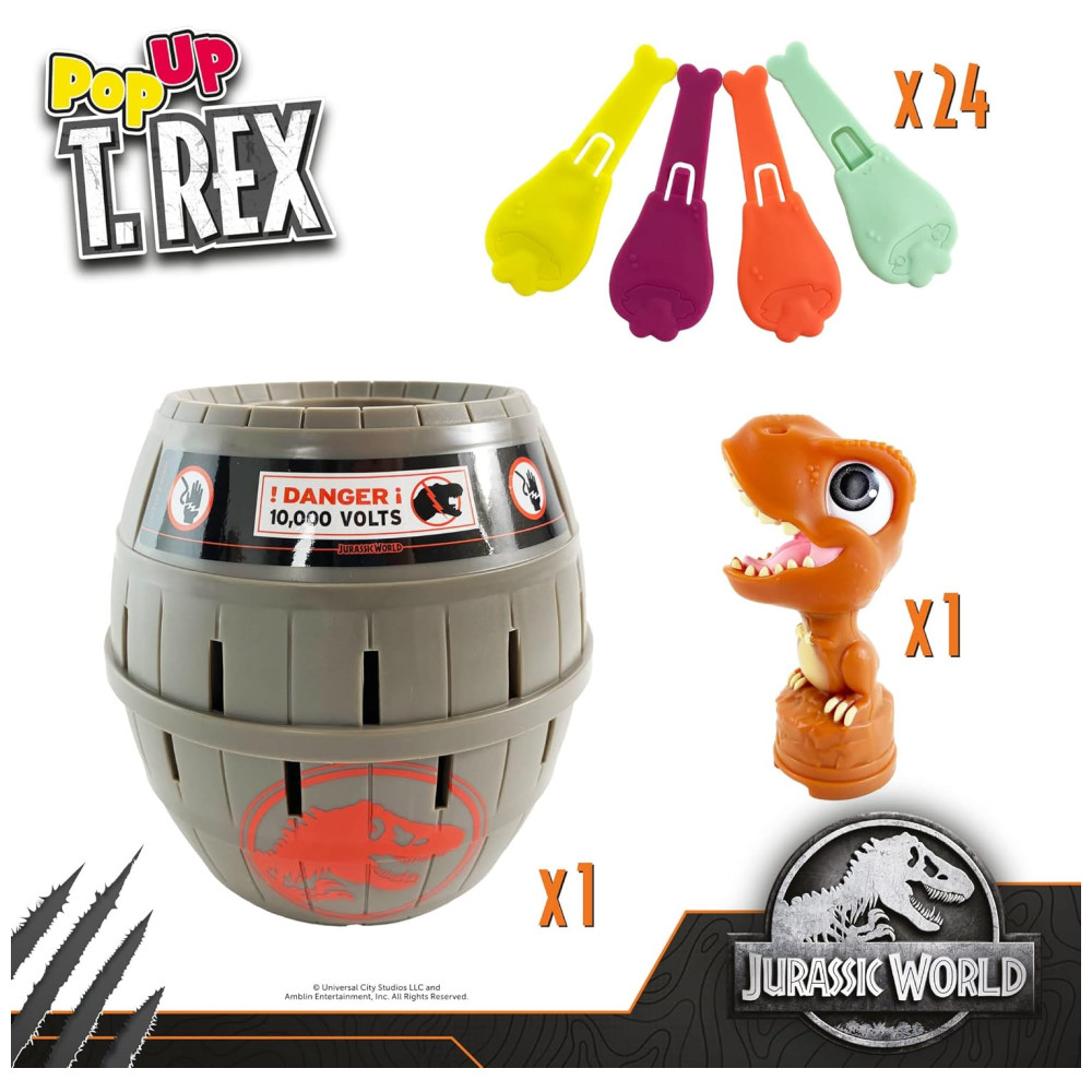 O Pop Up TRex da TOMY Games é um emocionante jogo infantil que leva você diretamente ao coração do Jurassic World. Com ele, você pode sentir como se estivesse viajando no tempo, milhões de anos atrás. O jogo consiste em deslizar ossos de dinossauro coloridos pelas laterais da caixa do Cretáceo, para descobrir se o dinossauro está preso ou solto. Se o dinossauro estourar para fora da caixa, você estará fora do parque e do jogo. O último jogador sobrevivente é o vencedor.