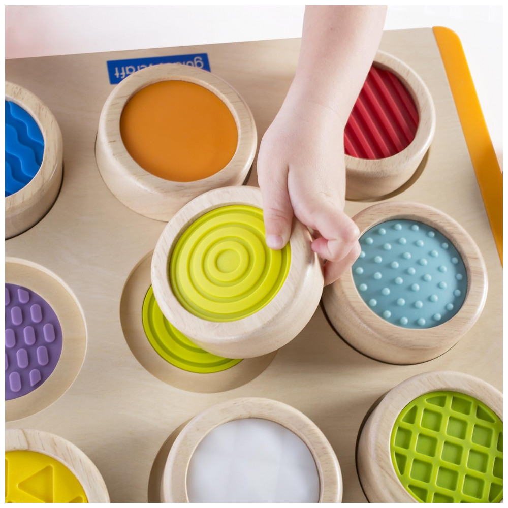 Jogo sensorial Colorful Tactile Search and Match Guidecraft em madeira multicolorida para memória tátil e classificação