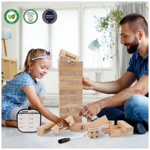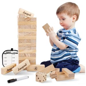 Jogo Torre de Blocos de Madeira para Toda a Família com 54 Peças e Bolsa para Transporte Ideal para Diversão em Família e Amigos Juegoal