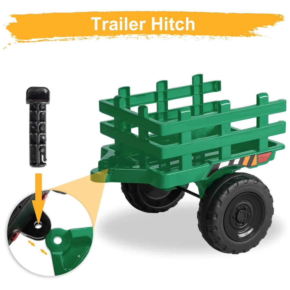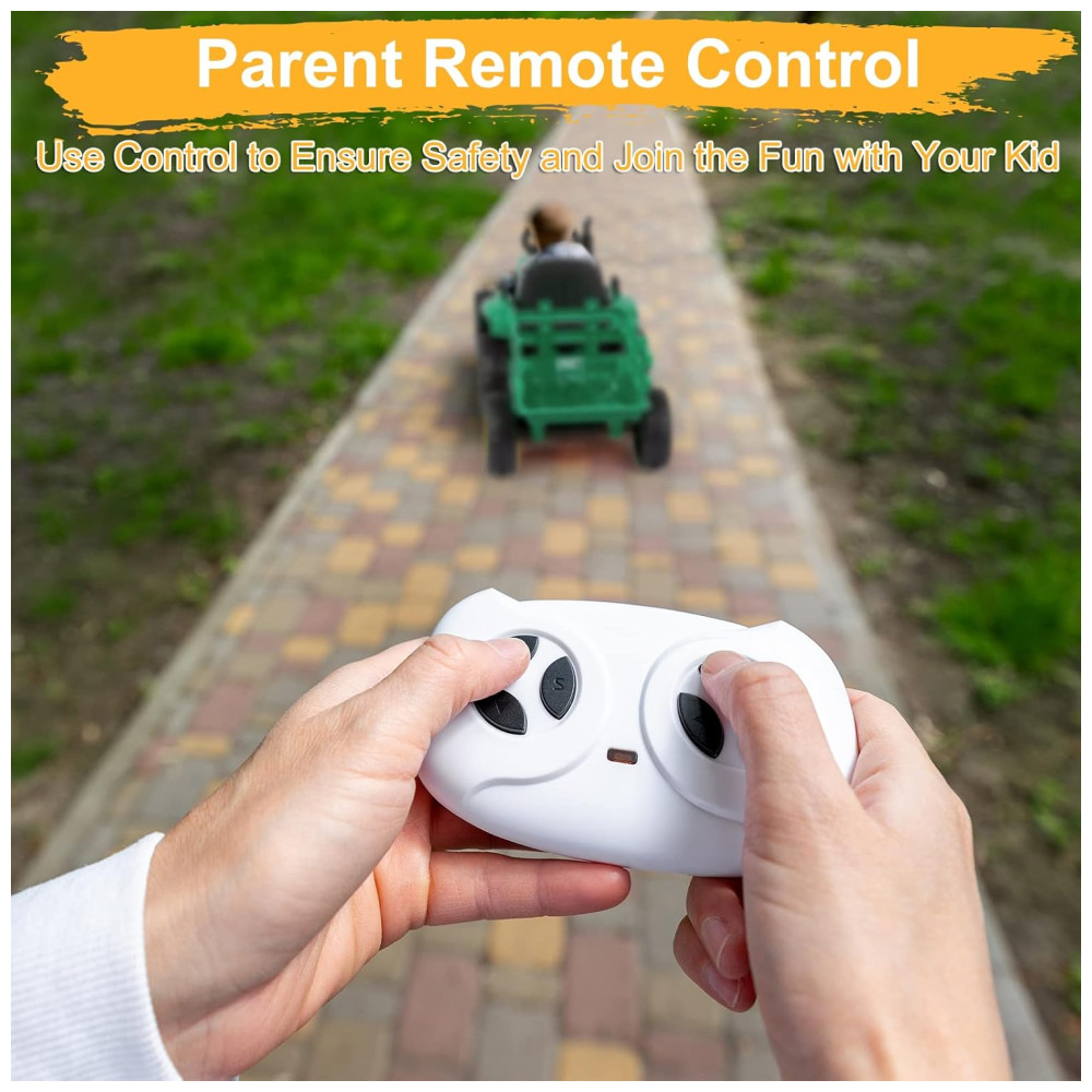 Rápido Possui grande potência. As rodas são muito onduladas, por isso percorre quase todos os terrenos. Lida com colinas muito bem. Projetado com funções de avanço e ré e duas velocidades 3 a 7 km, h para ajuste, as crianças vão adorar dirigir o trator com bateria por conta própria e obter mais entretenimento